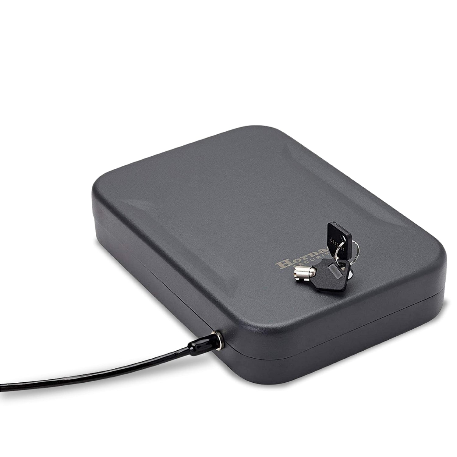 - Heavy and Sturdy – This Hornady safe is made from 16 gauge steel. Comes with a heavy duty 1500 lb. steel lock-down cable that attaches the portable safe to any stationary object, including a vehicle seat or heavy piece of furniture