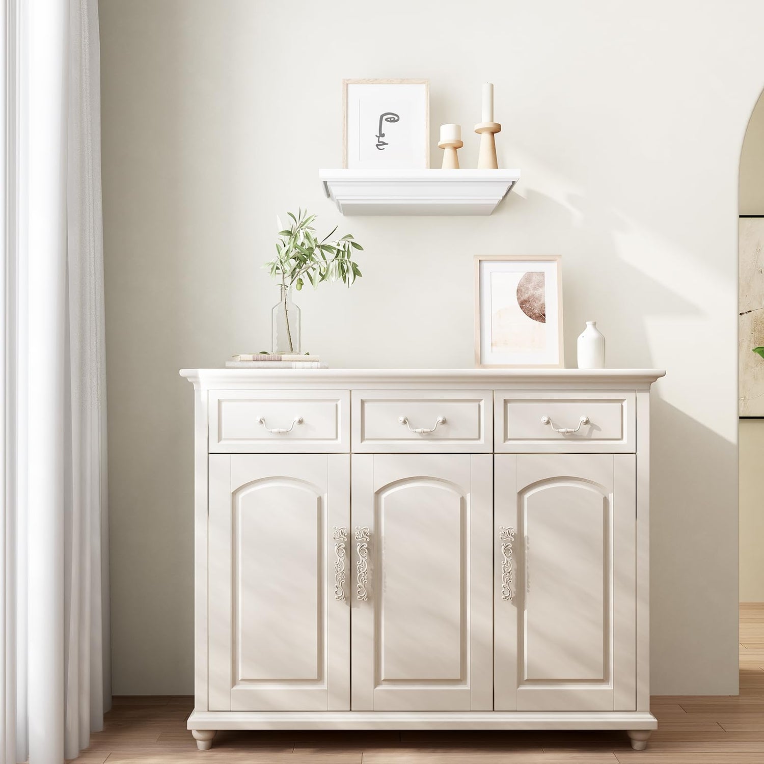 JOLLYMER Concealment Gun Shelf with Hidden Trap Door with RFID Lock, White Floating Shelf for Living Room