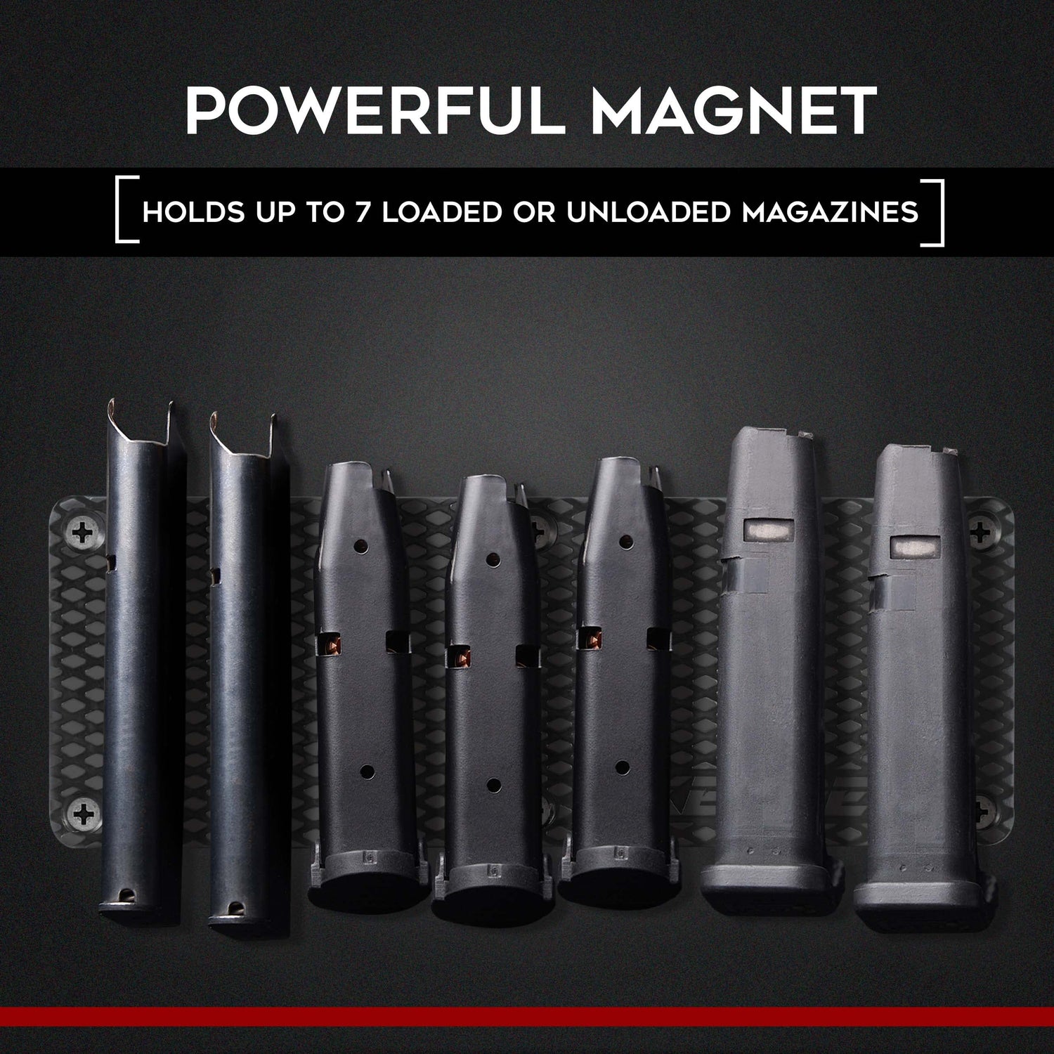 - PREMIUM QUALITY: Durable high quality design, made to last. Powerful neodymium magnets will firmly hold your firearm magazines. Strong enough to hold up to 7 loaded or unloaded metal clips or magazines.