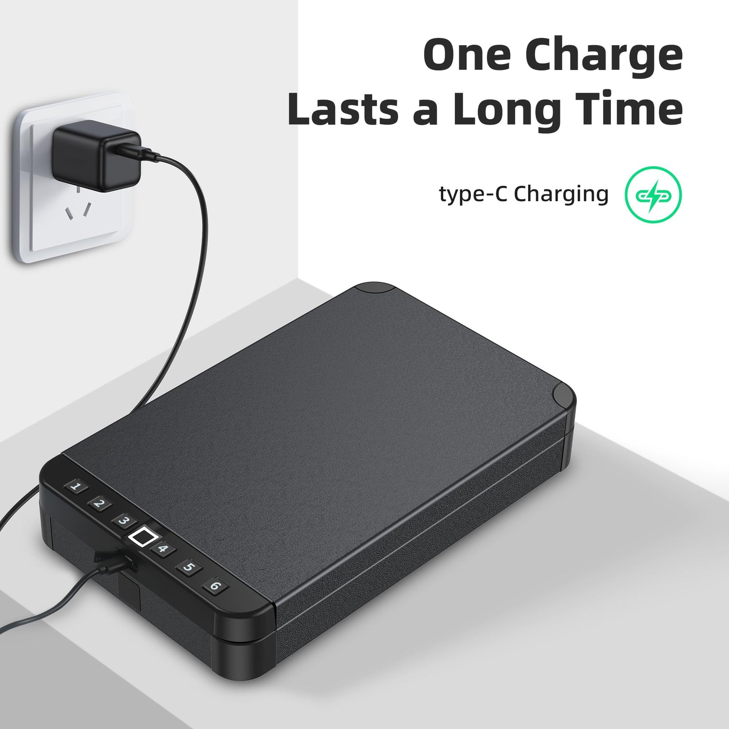 - 【Packing List and 100% Services】Includes: 1 rechargeable battery, 1*safe box, 1*Steel cable, 2*mechanical key, 1*TYPE-C cable, 1*manual. TYPE-C charges in 3 hours and can standby for 12 months.For more information, please contact us via email.
