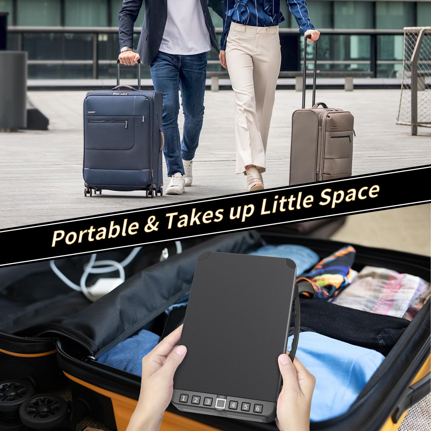 - 【Compact Size for Multiple Scenarios】Safe box exterior dimensions 12.04" x 7.51" x 2.01", interior dimensions 8.85" x 7.08" x 1.77. Can be placed in any place and taken on the go when travelling.Of course, it can be placed in a car,bedside,wardrobe,or suitcase.