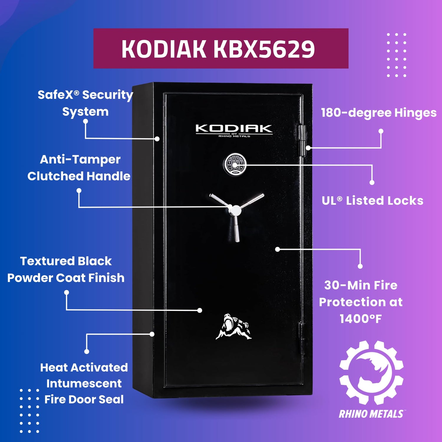 Kodiak Gun Safe for Rifles & Pistols, KBX5629 by Rhino Metals with New SafeX Security System, Safely Stores 42 Long Guns & 9 Handguns, Door Organizer for Handguns & Ammo, 390lbs