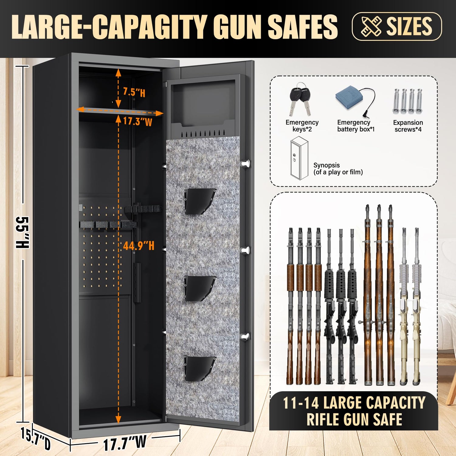 - 【Suitable For All Sizes Of Guns】17.7"W*15.7D"*55.1"H large capacity gun safe, inside contains two removable gun racks, adjust the height at will,gun safes for home rifle and pistols, suitable for shotguns, long guns, shotguns, rifles, handguns and other various sizes of guns.