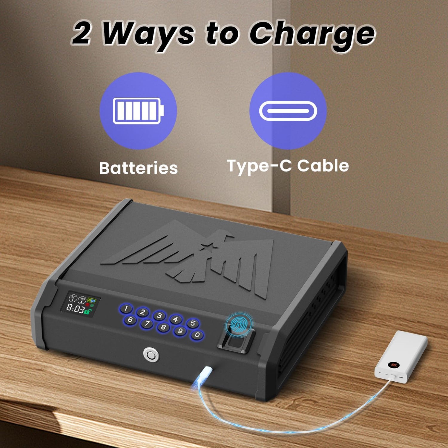 • 🔐【3 Ways to Immediate Access】You can use 3 ways to unlock this safe. In addition to using the key and 8 digits long password, you can also use up to 99 fingerprints to access quickly.