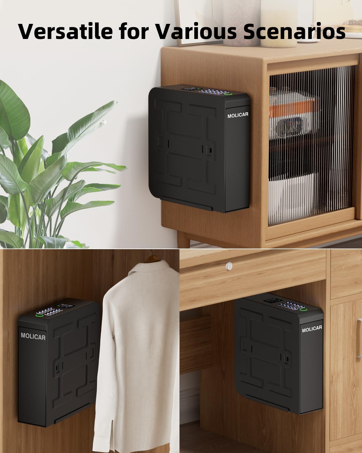 MOLICAR Biometric Slider Pistol Safe with LCD of Temp Humidity Battery, Mounted Single Bedside Gun Safe with 3 Ways Quick Access Handgun Case for Nightstand, Bed, Desk, Wall, Dresser