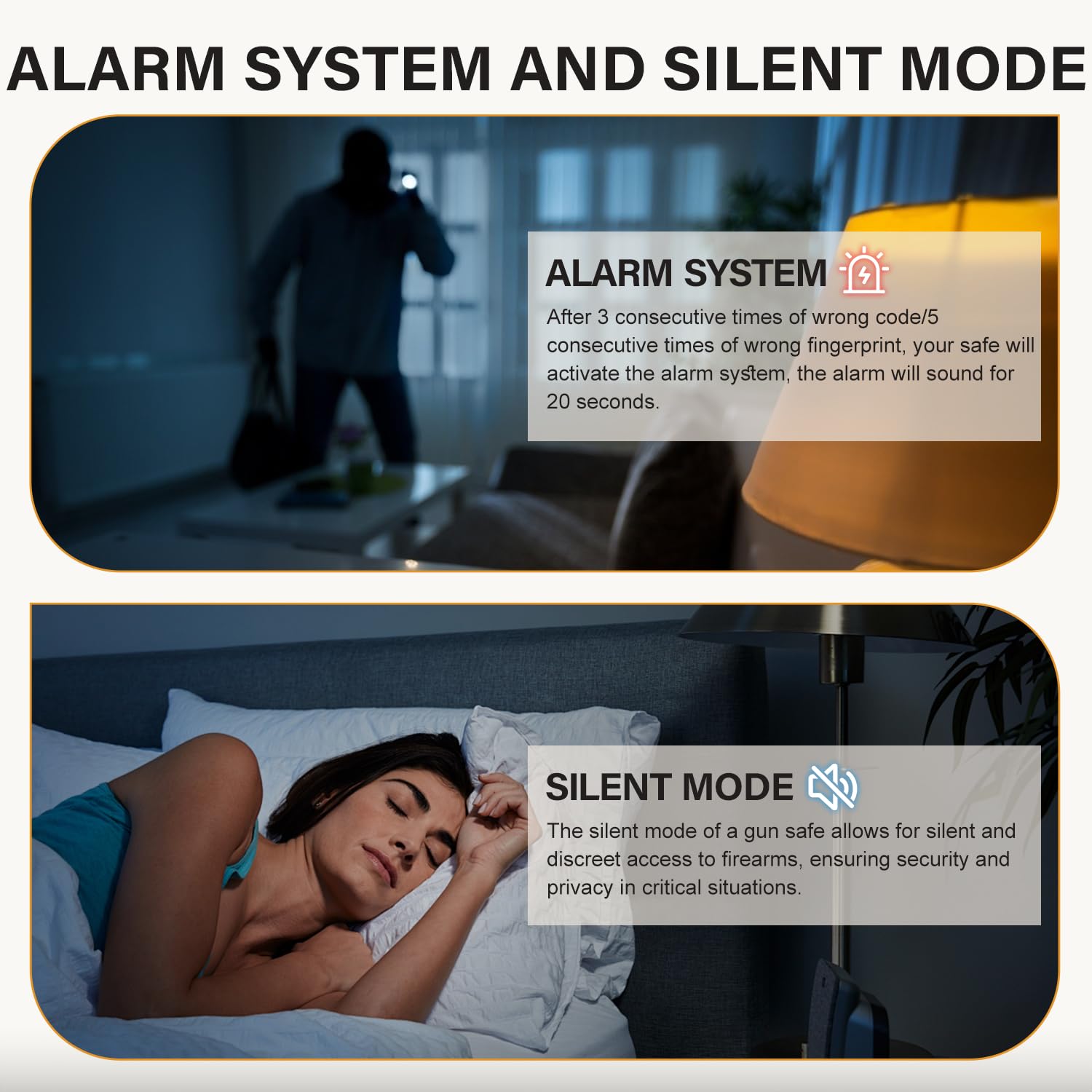 • 【HOME GUN SAFE SET】What You Get: 1 x 1-2 Gun Safe, 2 emergency keys, 5 expansion screws, 1 USB cable, 1 user manual. The detailed graphic user manual allows you to quickly become proficient with the product after receiving it.