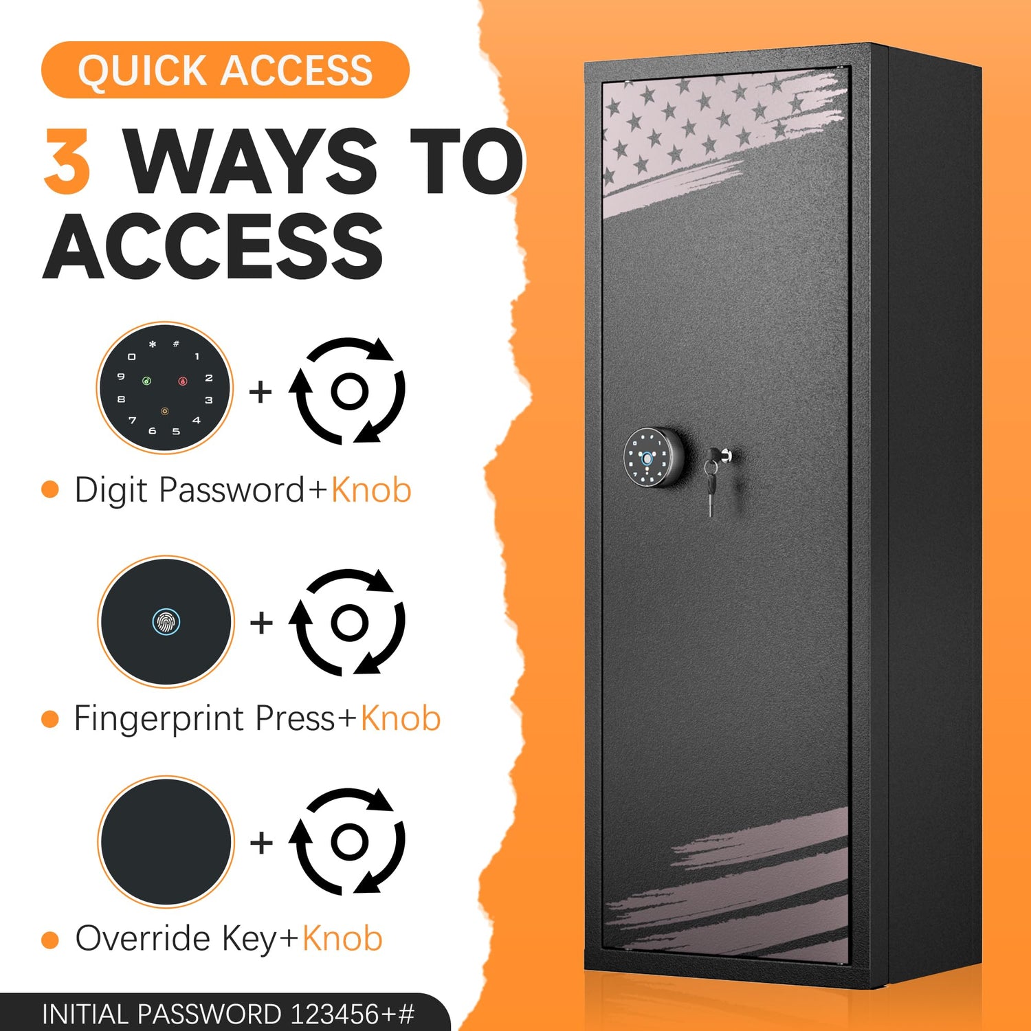 Pataku 10-14 Rifle Gun Safe for Home Rifle and Pistols, Gun Safes for Rifle and Shotguns with Flag Design, Long Gun Cabinet with with 3 Adjustable Shelves, Quick Access, Pockets