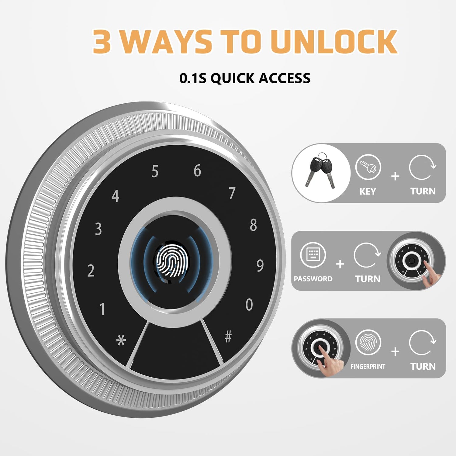 • 【Smart Alarm & Silent Mode】Press "*" to activate the vibration alarm. If an incorrect password is entered 5 times, the safe will automatically lock for 60 seconds and sound an alarm. Additionally, a vibration alarm is triggered if the safe detects any impact or movement, providing extra security. Enter "#00*" to switch between mute and non-mute modes.