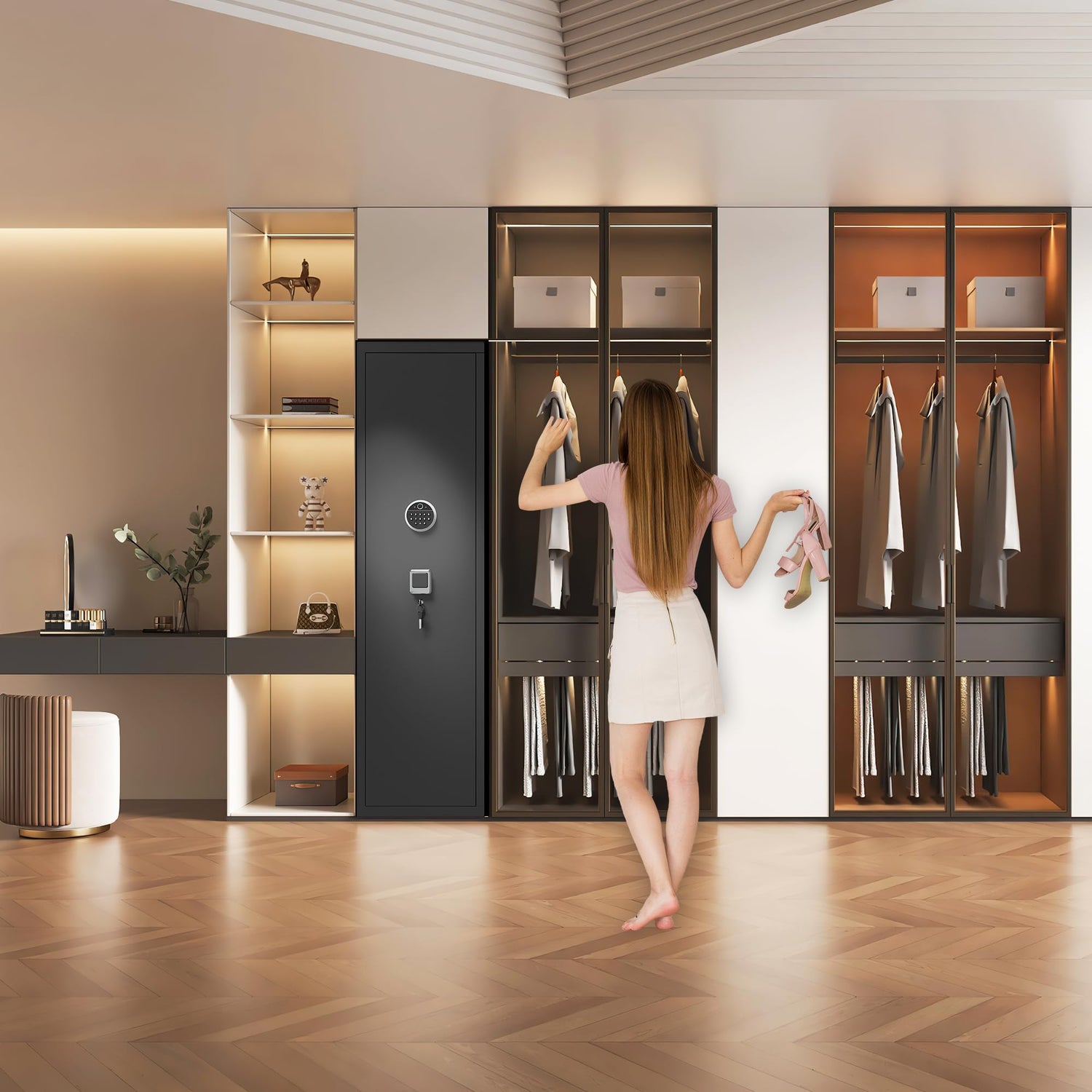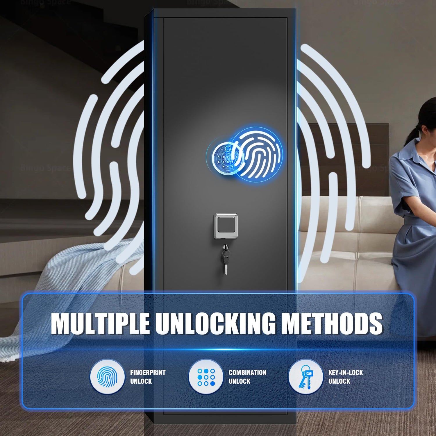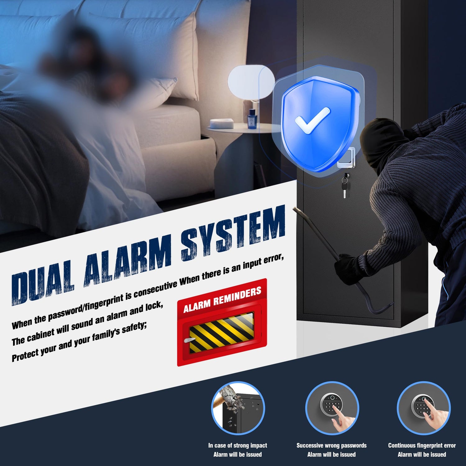 - 【INTELLIGENT GUN CABINET,SECURITY GUARD】Triple encryption access control,fingerprint accurate identification,dynamic password protection,backup mechanical locks for emergency,multiple lines of defense layer by layer,non-authorized to open the impossible,the alarm system triggered synchronously,to protect you and your family's safety!