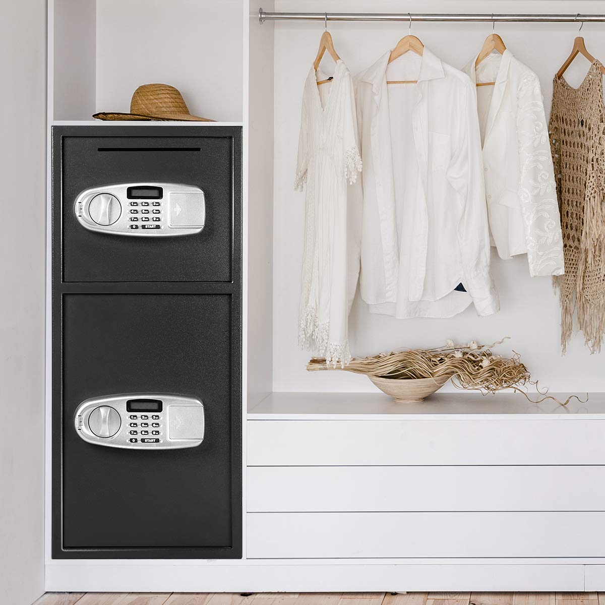 S AFSTAR Digital Safe Box, Double Door Security Depository Drop Box, Drop Slot Safes with Separate Keypad and Emergency Keys for Gun Cash Jewelry Document, 14 x 12 x 31.5 Inches, Black