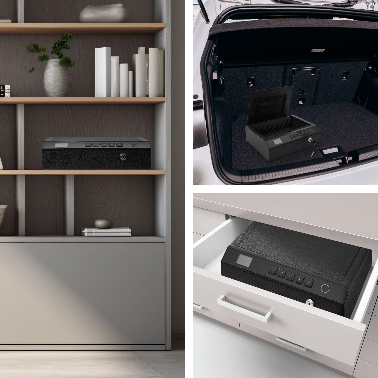 Sgorlds Biometric Gun Safe for Handgun with LCD Display of Temperature Humidity, Fingerprint Quick Access Pistol Safe with USB C Port, 12.6"x 10.24"x 3.15", Black
