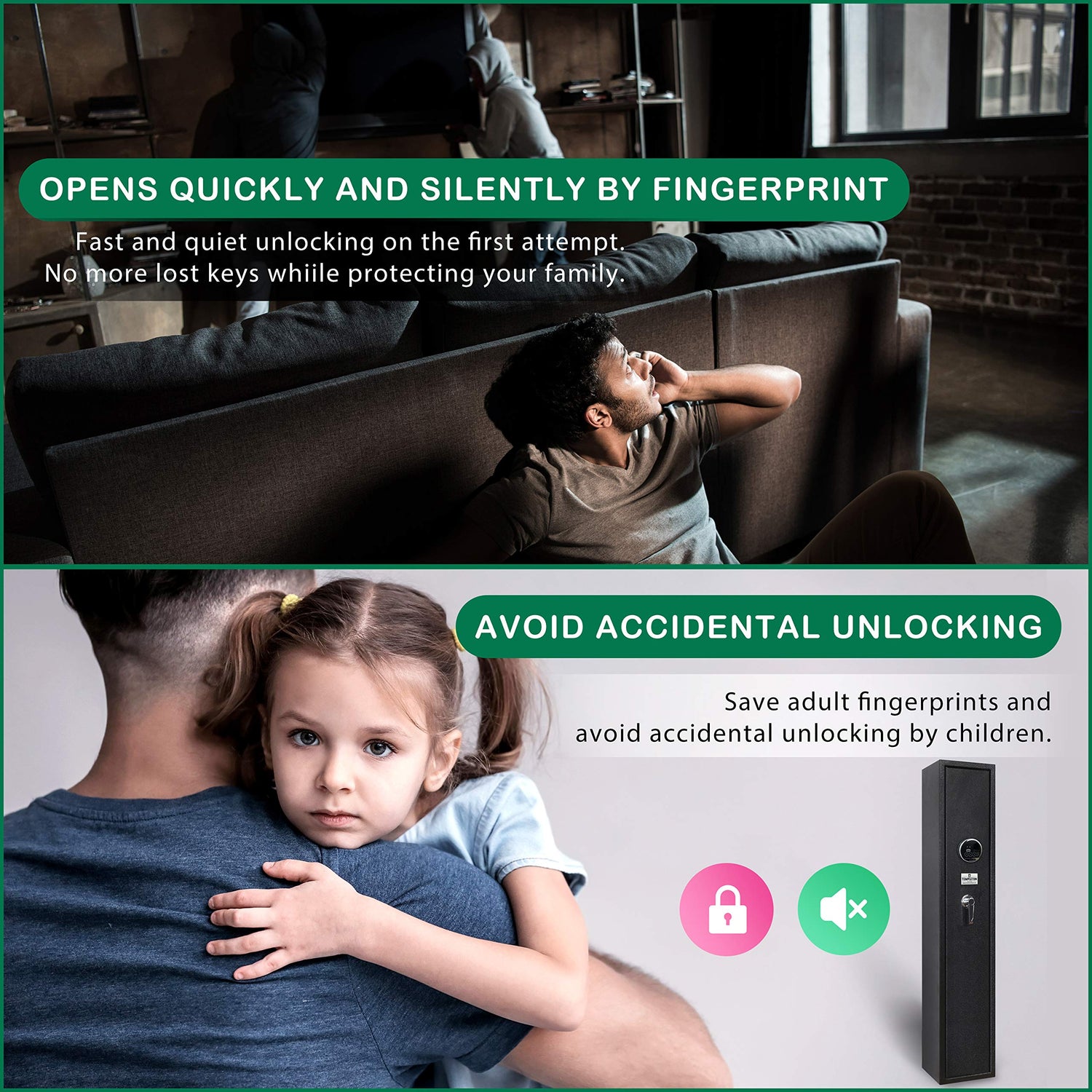 • SAFE AND SECURE: Solid steel body safe with 4 steel locking bolts for ultimate security. Fingerprint biometric entry to secure against unwanted entry. Silent mode setting can be turned on for quiet entry into the safe in case an intruder is lurking.