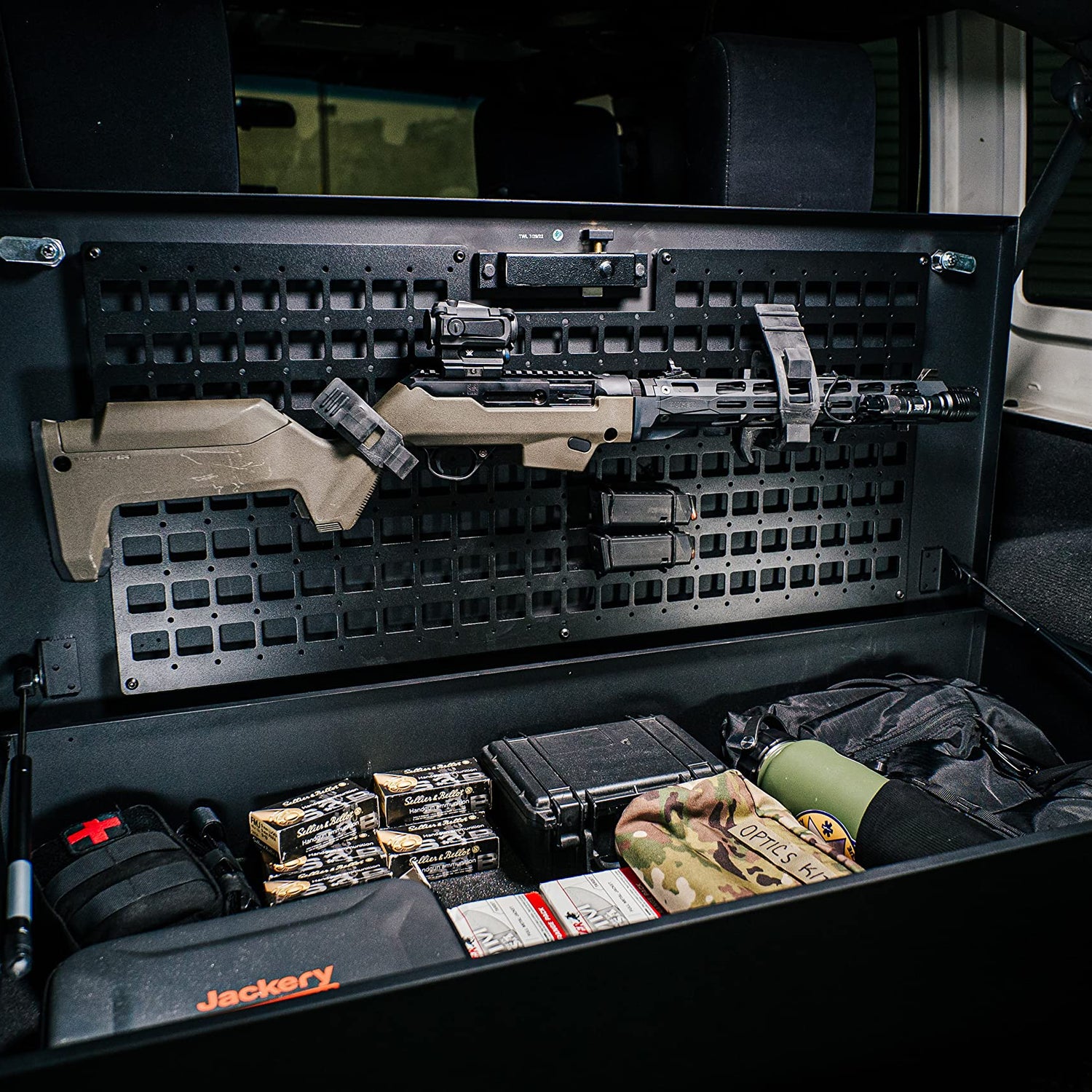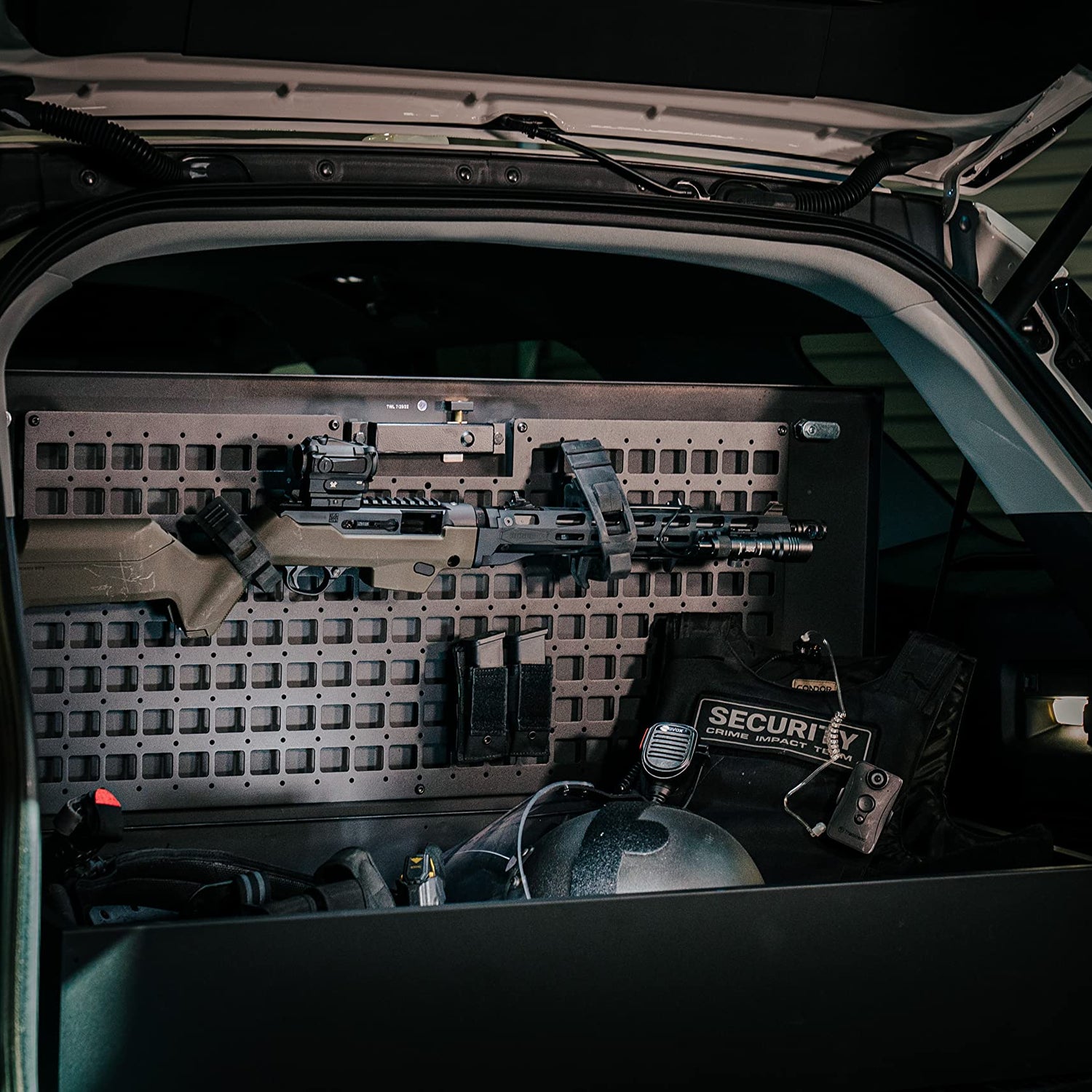 Details: V-Line’s NEXT GEN Tactical Weapons Locker XD now includes enhancements the Tactical crowd requested over the last year. New features include a Molle Panel Board on the lid and Heavy Duty Lock Cover for the Simplex mechanical lock. Designed for our Law Enforcement, Security agencies, Public Safety and firearm enthusiasts concerned about securing there firearms. The Tactical Weapons Locker XD is constructed of a rigid a 14ga steel lid and a 16ga steel body. The Locker has two key locks on the corners and a dependable Simplex mechanical lock for quick access. A foam pad on the bottom of the case protects you firearms/gear along with quick release nylon straps. The Tactical Weapons Locker XD fits between the wheel wells on most SUV’s, pickup trucks and trunk of vehicles with adequate space to accommodate the TWL XD. Optional Long Gun Mounting Brackets designed with brackets specifically for the V-Line designed Molle Panel can be purchased from V-Line’s website.