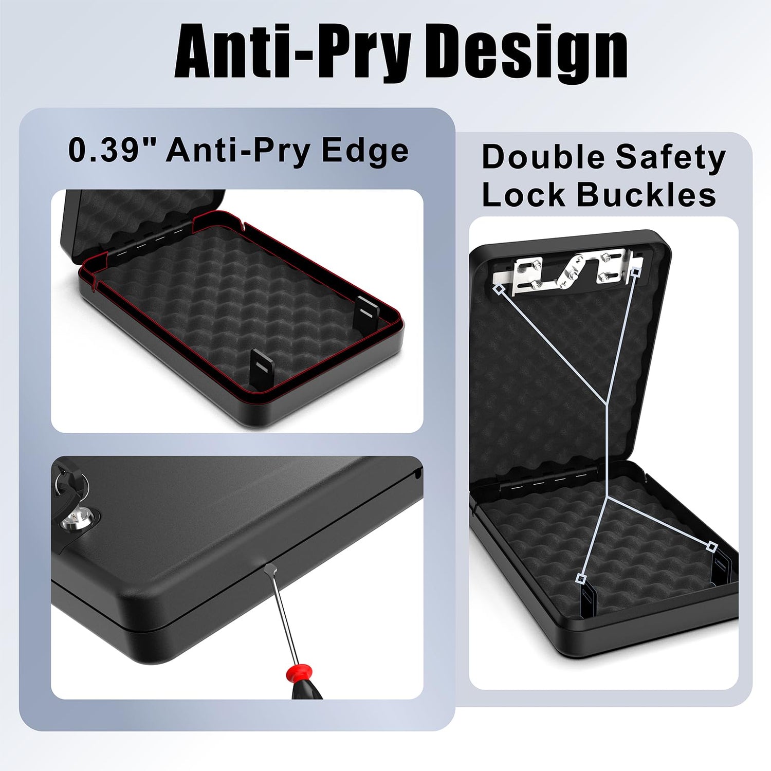 • Simple Key-Based Access: No codes to remember or batteries to replace. Just use the included keys to unlock your safe instantly. Ideal for quick, reliable access at home or on the go.