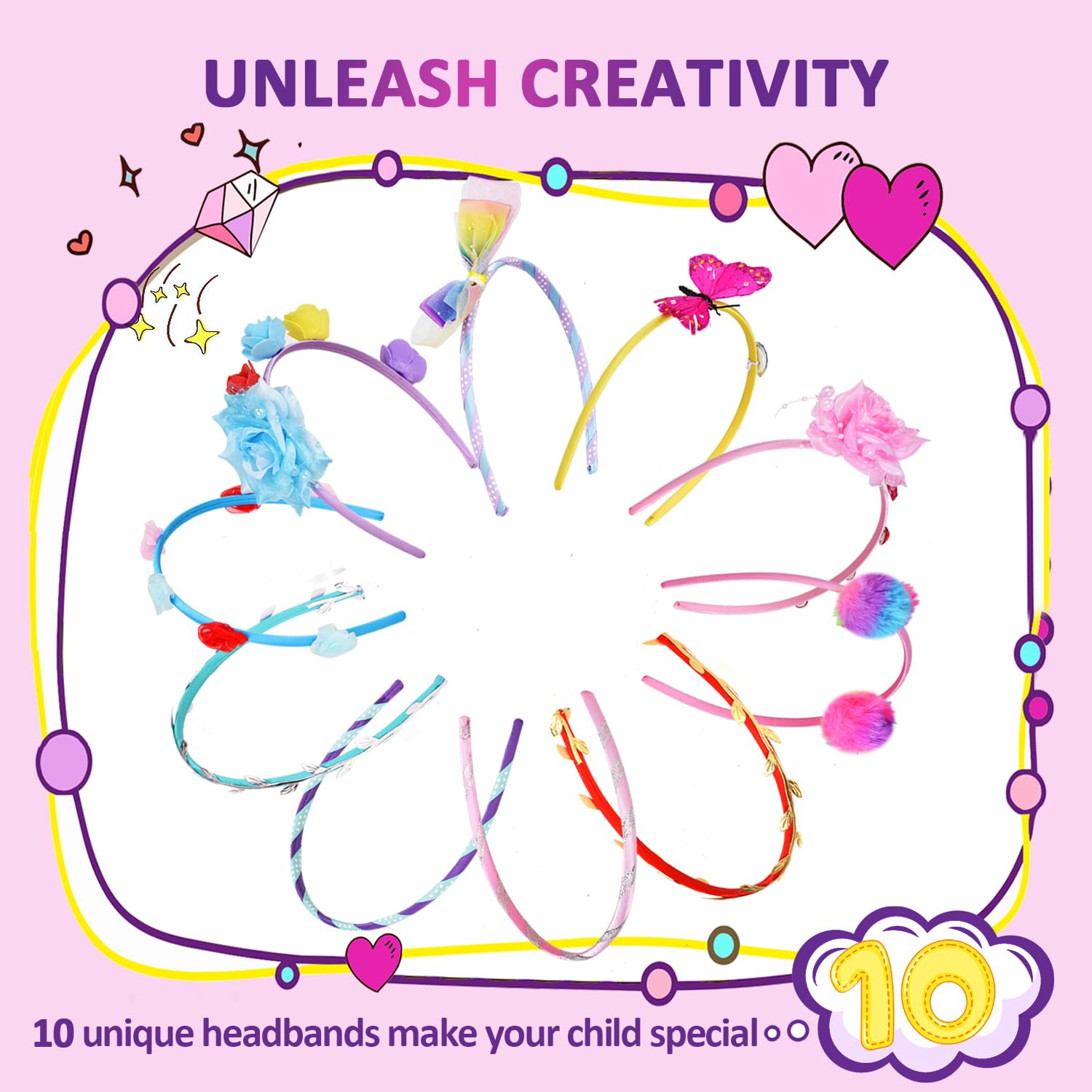 Heroange Headband Making Kit for Girls, Arts and Crafts for Kids Ages 5-7, DIY Hair Accessories Set for Girls Toys 8-12, Made Your Own 10 Fashion Headbands, Christmas Birthday Gifts