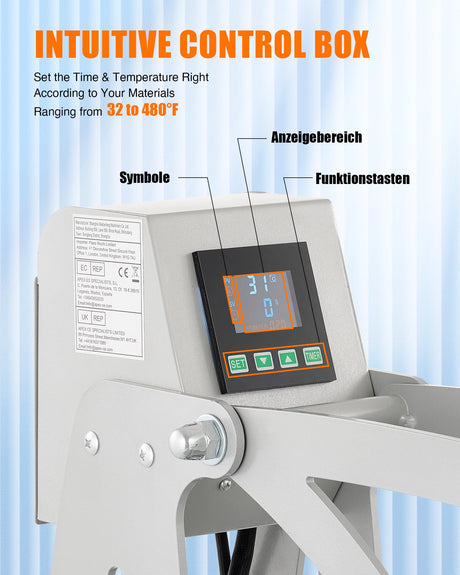 • Gejok 8x8 Label Pneumatic Heat Press Machine - Auto-Balance Sublimation Press for Labels, Caps, Cups - Digital Control Gejok