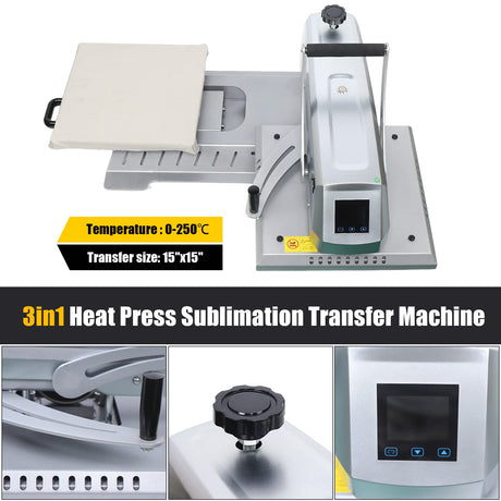 • Whubefy 360° Swivel Auto Heat Press 15x15 - Professional Automatic Shirt Press Machine with Auto Release & 7-Level Auto Pressure - Swing Away Large Pro Heat Press Machine for T Shirts Hoodie HTV Vinyl Whubefy