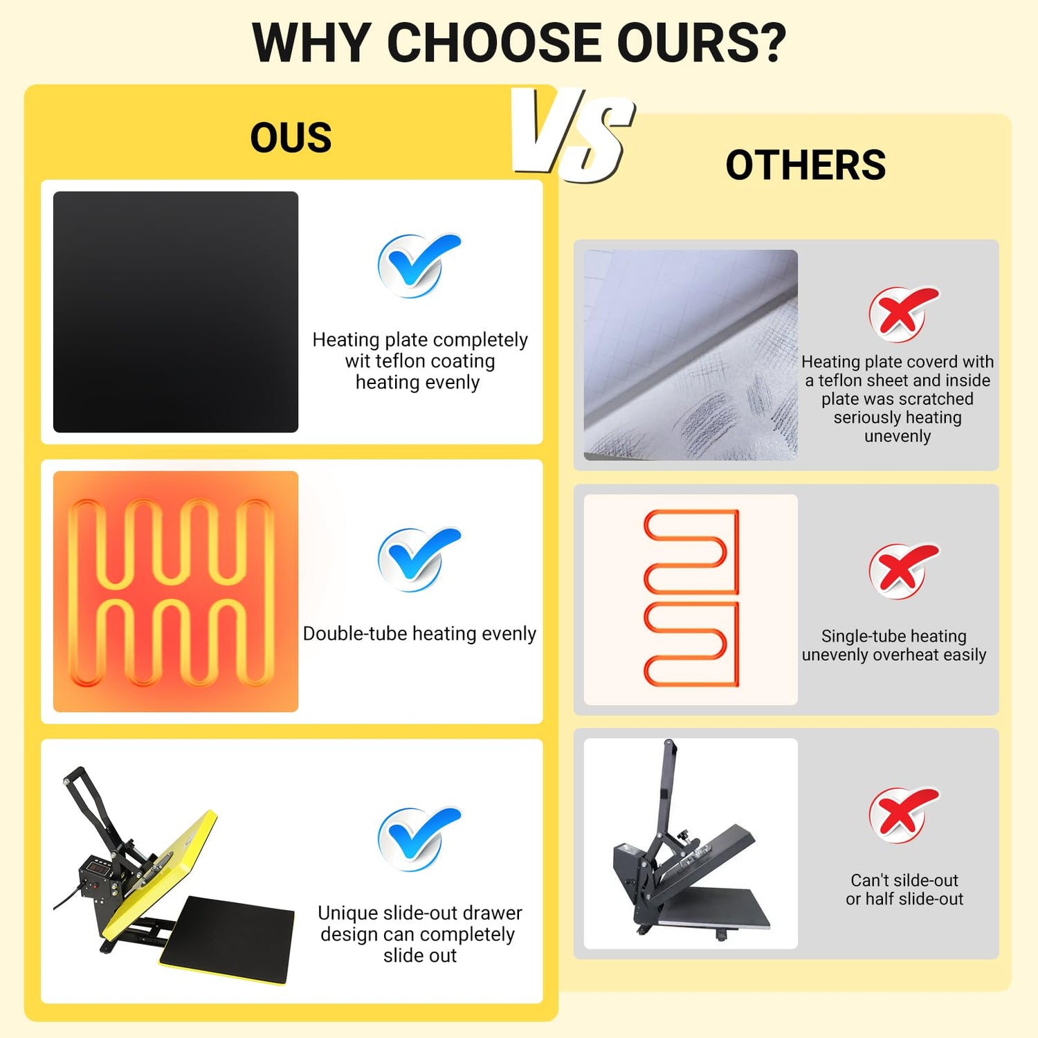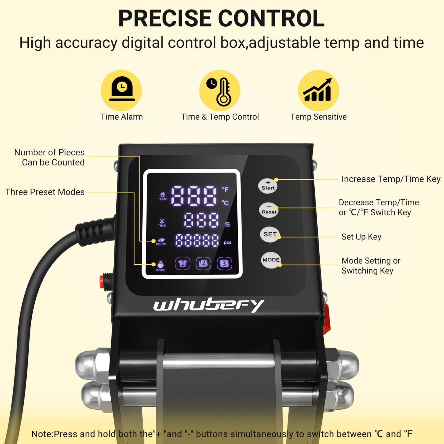• 💛Digital Controller: Large digital display, concise and clear, ensuring precise control of temperature and time during the T-shirt printing process. Counters provide additional functionality for calculating yields.