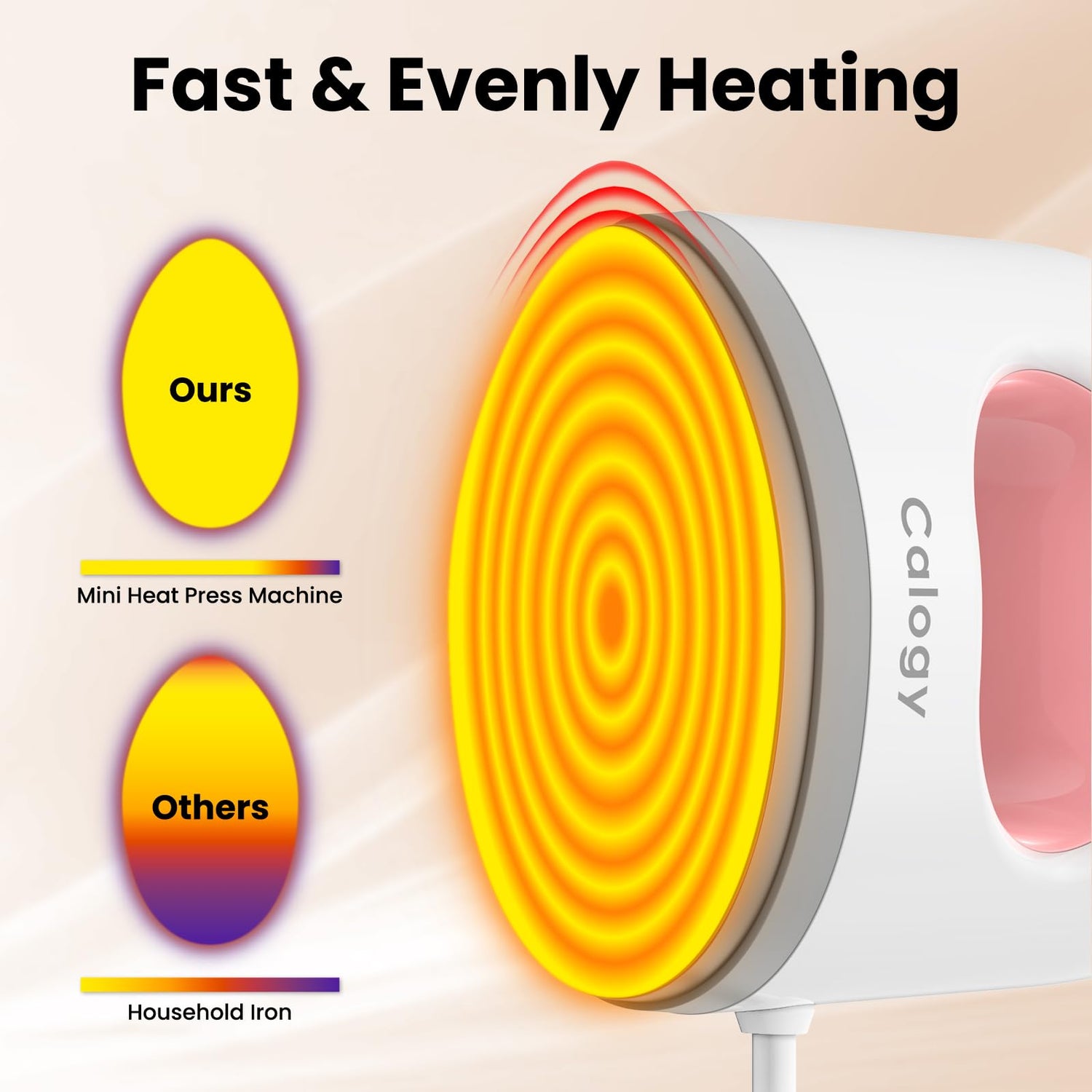 Calogy Super Mini Heat Press Machine, Max 410℉ & 4 Heating Setting with LED Display, Mini Iron for Crafting with Precision Tip, Easy for Small Objects Like Shoes, Stuffed Animals, Hats (White Pink)