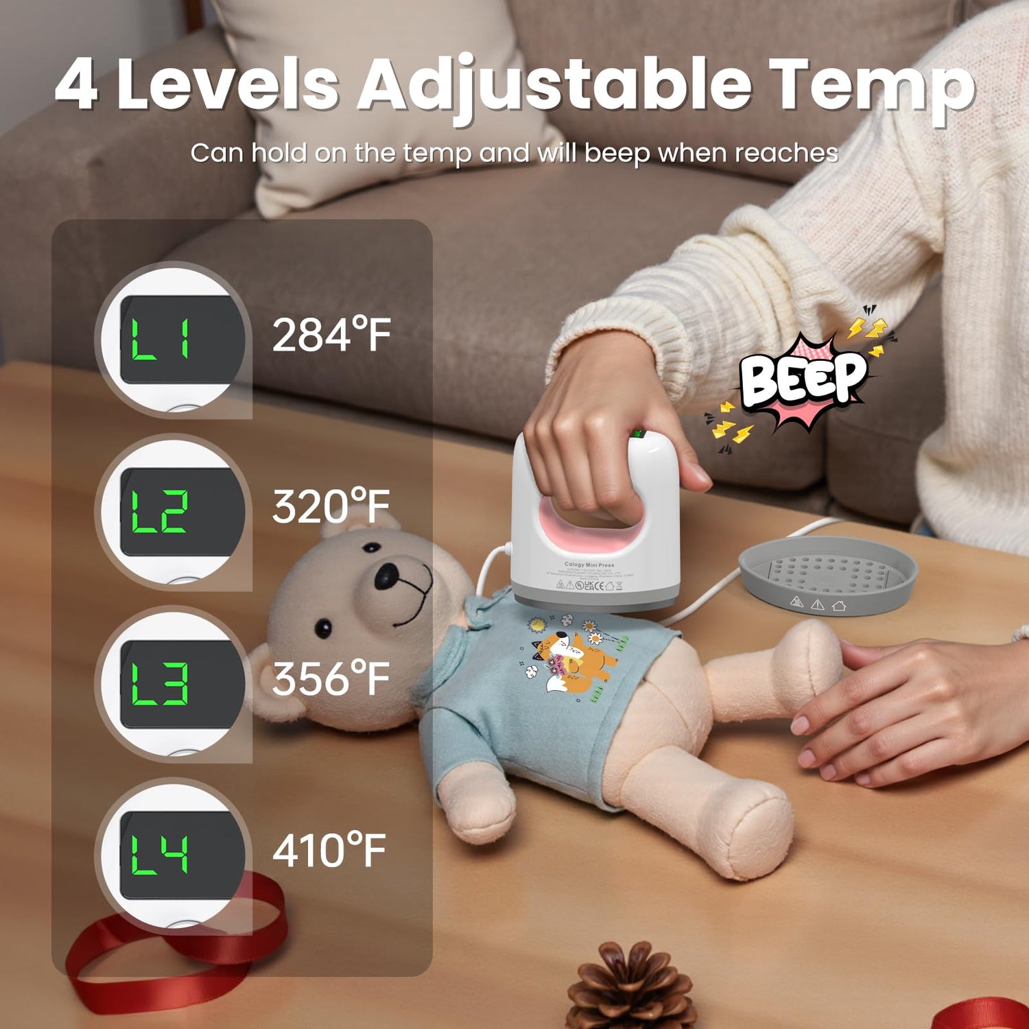 - 4 Heating Settings: L1: 284°F (140°C), L2: 320°F (160°C), L3: 356°F (180°C), L4: 410°F (210°C); with 4 heat temperature levels, it can handle different materials, meeting all your DIY needs