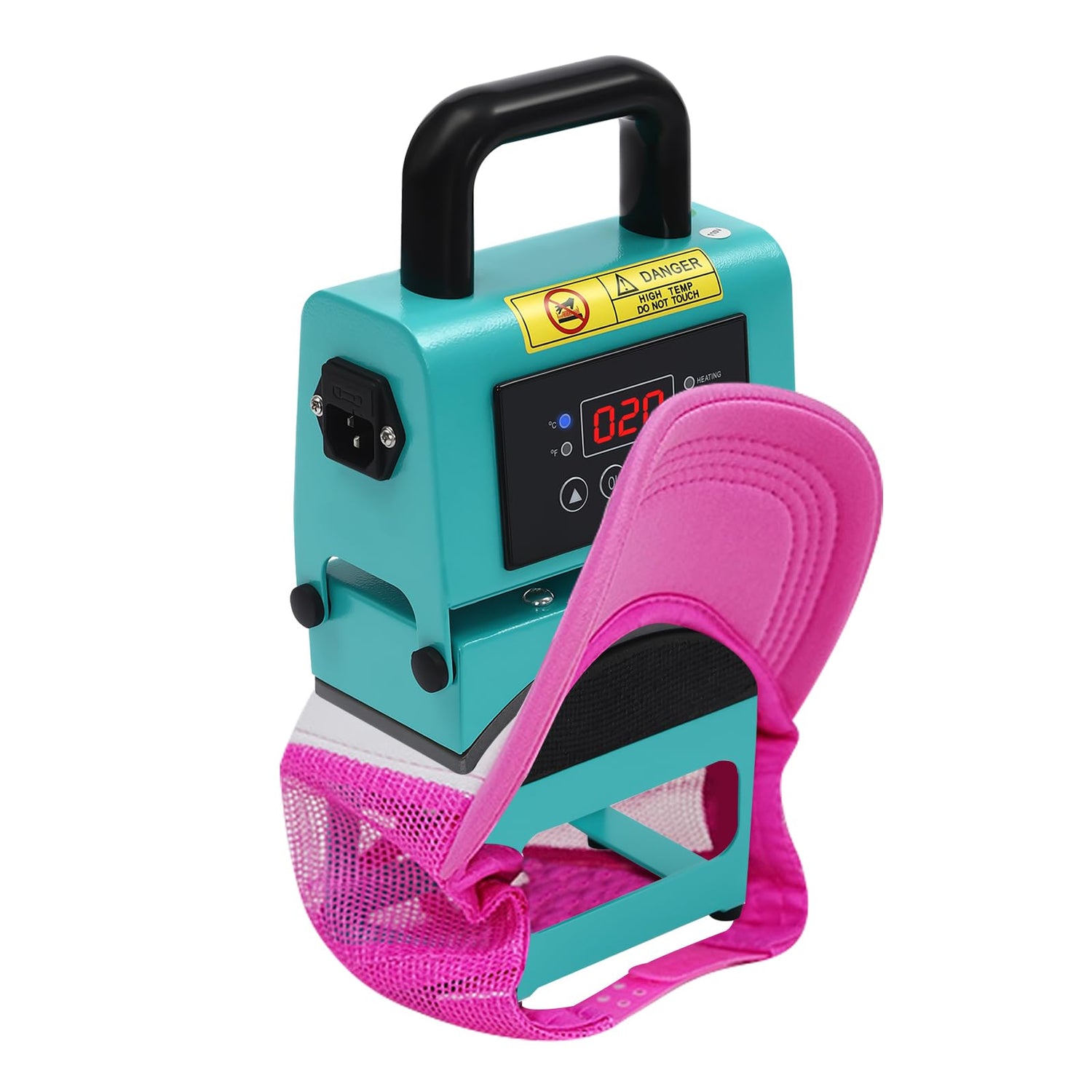 Cap Press Machine 350W,Professional Heat Press for Hats with Digital Display, 0-482°F Adjustable Temperature and 999s Timer, Portable Curved Plate Design for Sublimation, HTV, DTF (Blue)