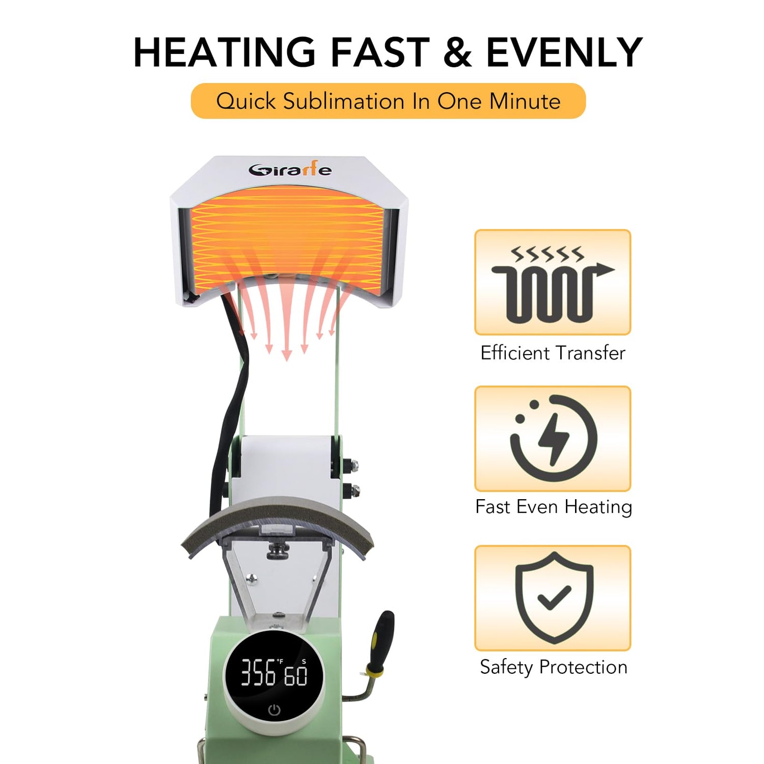 • 🎁【Hat Press Auto-Release Function】No more sitting around and babysitting your hat heat press! Unlike manual hat heat presses, our Giraffe auto hat heat presses have an auto-release feature. This means that when the timer runs out, the hat heat press machine automatically lifts the heating plate. A feature like this saves you time by allowing you to confidently complete other tasks, without worrying that the cap will be pressed longer than the timer allots.