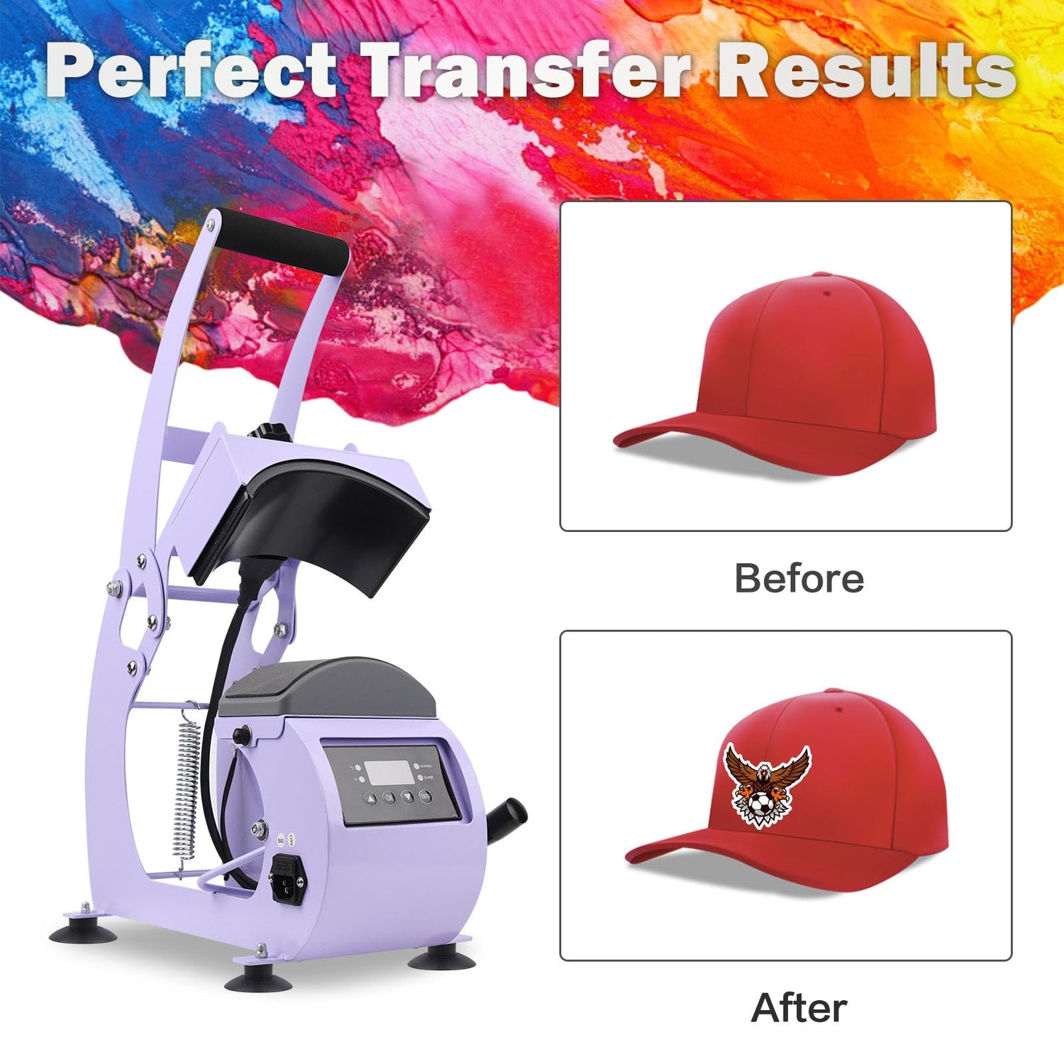 • PERFECT TRANSFER RESULTS: The custom-molded silicone lower platen and high-efficiency heat-conducting Teflon-coated heating plate, precisely calibrated for optimal curvature, ensure flawless, long-lasting prints. Paired with the hat stretcher, it securely holds the hat in place, preventing design wrinkles and significantly enhancing print quality