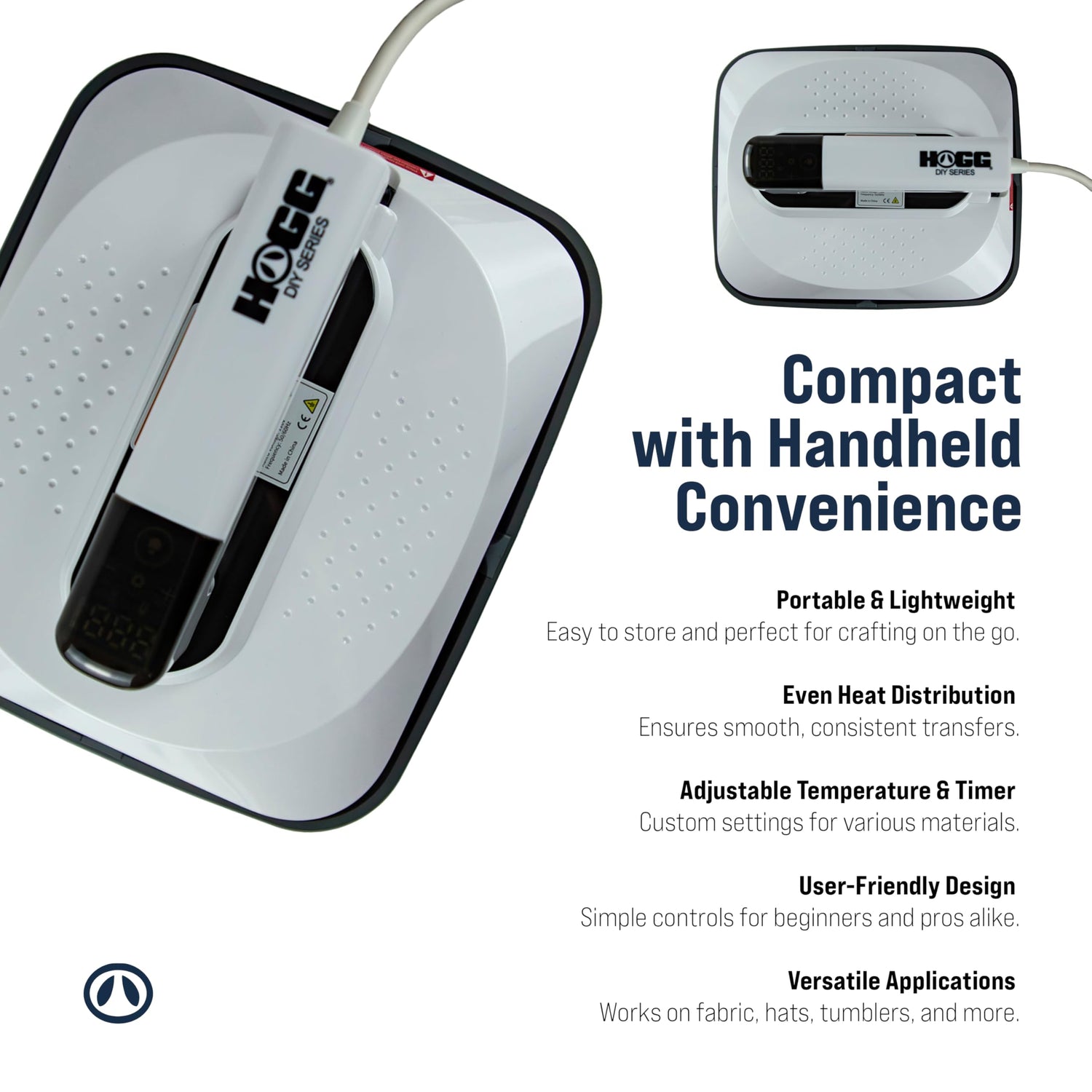 Hogg Heat Press Machine for T Shirts - DIY Series, Hand Held (10" x 12"), Craft Heat Press for Shirts, Hats, Tote Bags, Machine for HTV, DTF, DTG, Temperature Range 0 to 392 F