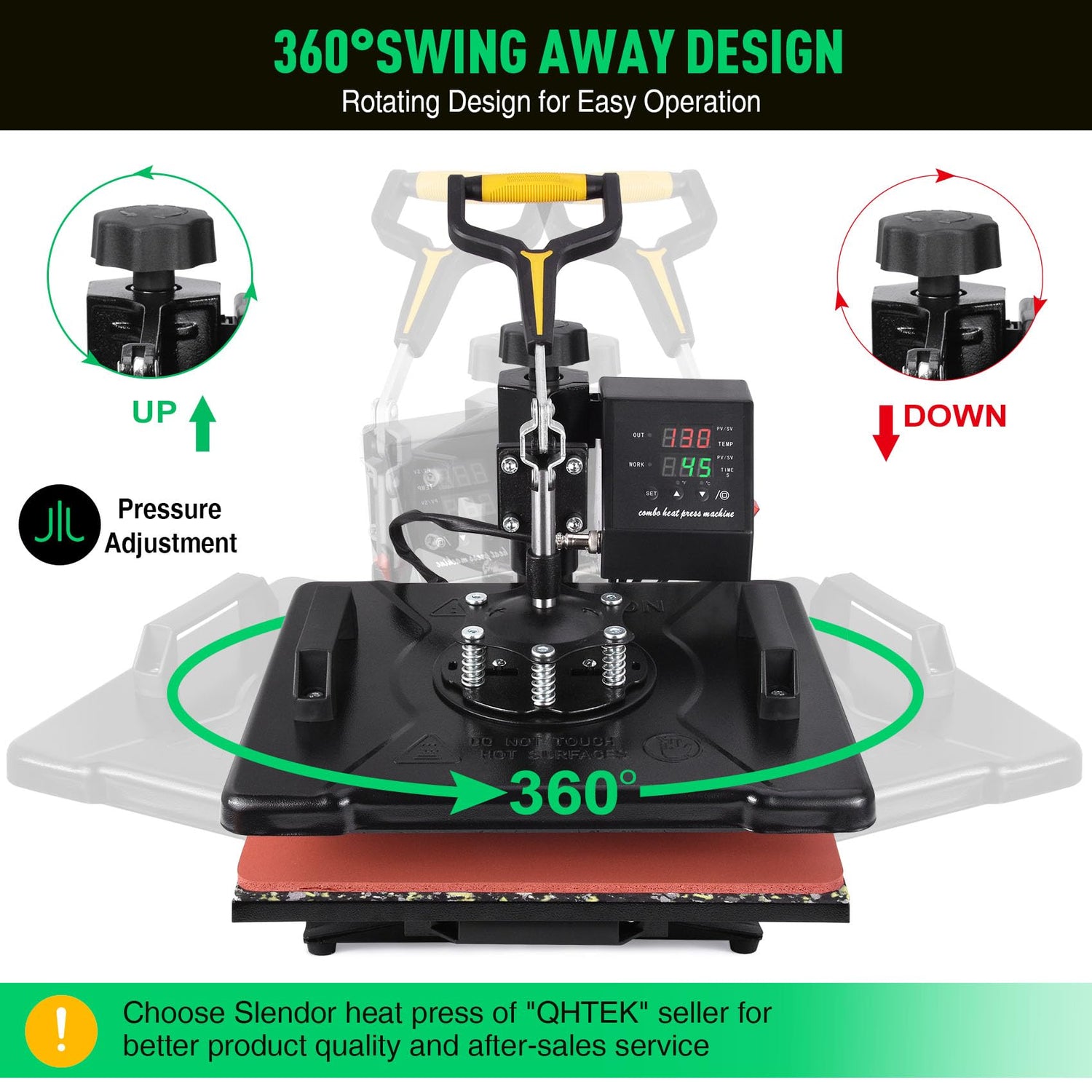 • Shirt Press 12x15 inch, 360-degree rotation and swing-away design, allows the heating element to be moved safely aside. Digital control box, User-friendly in operation
