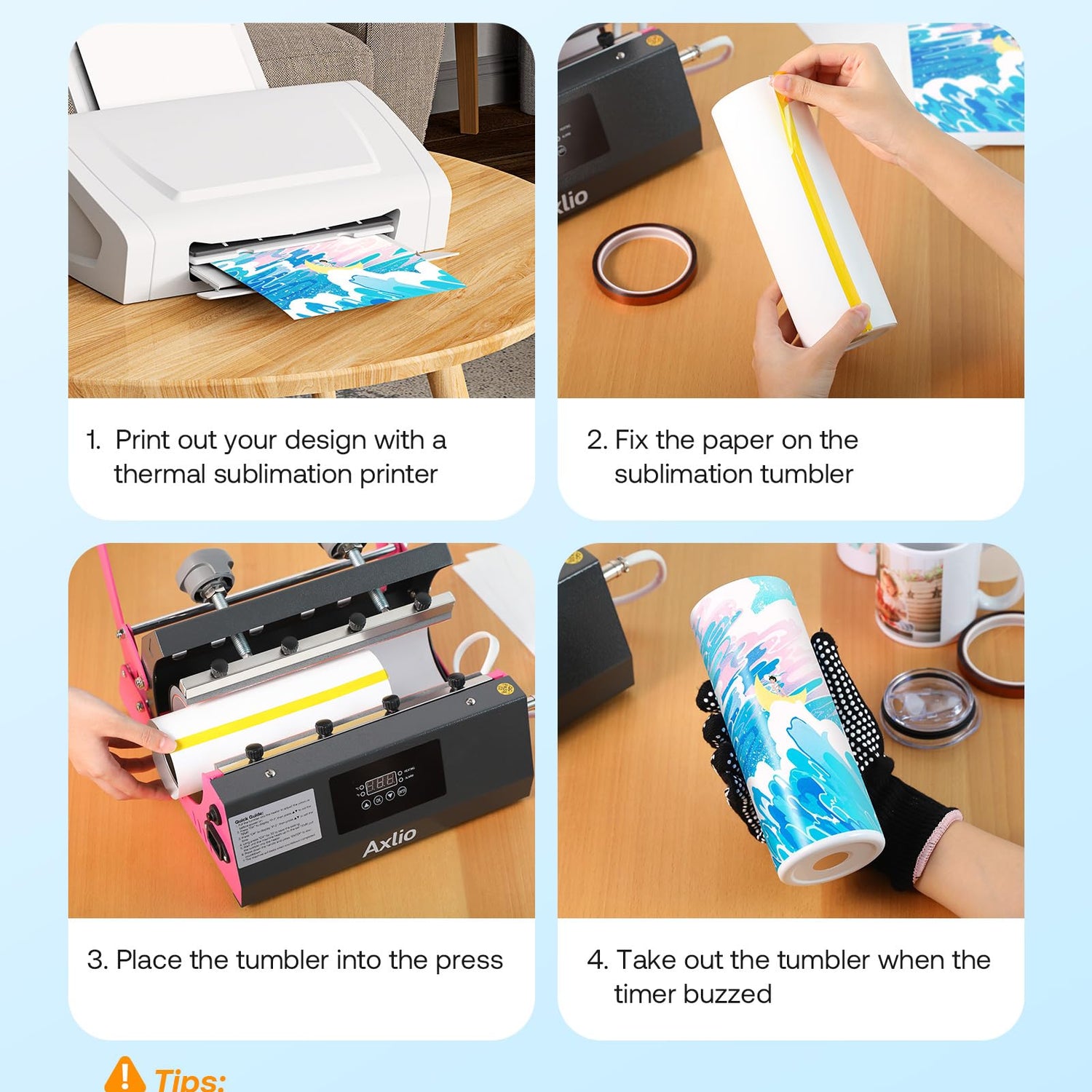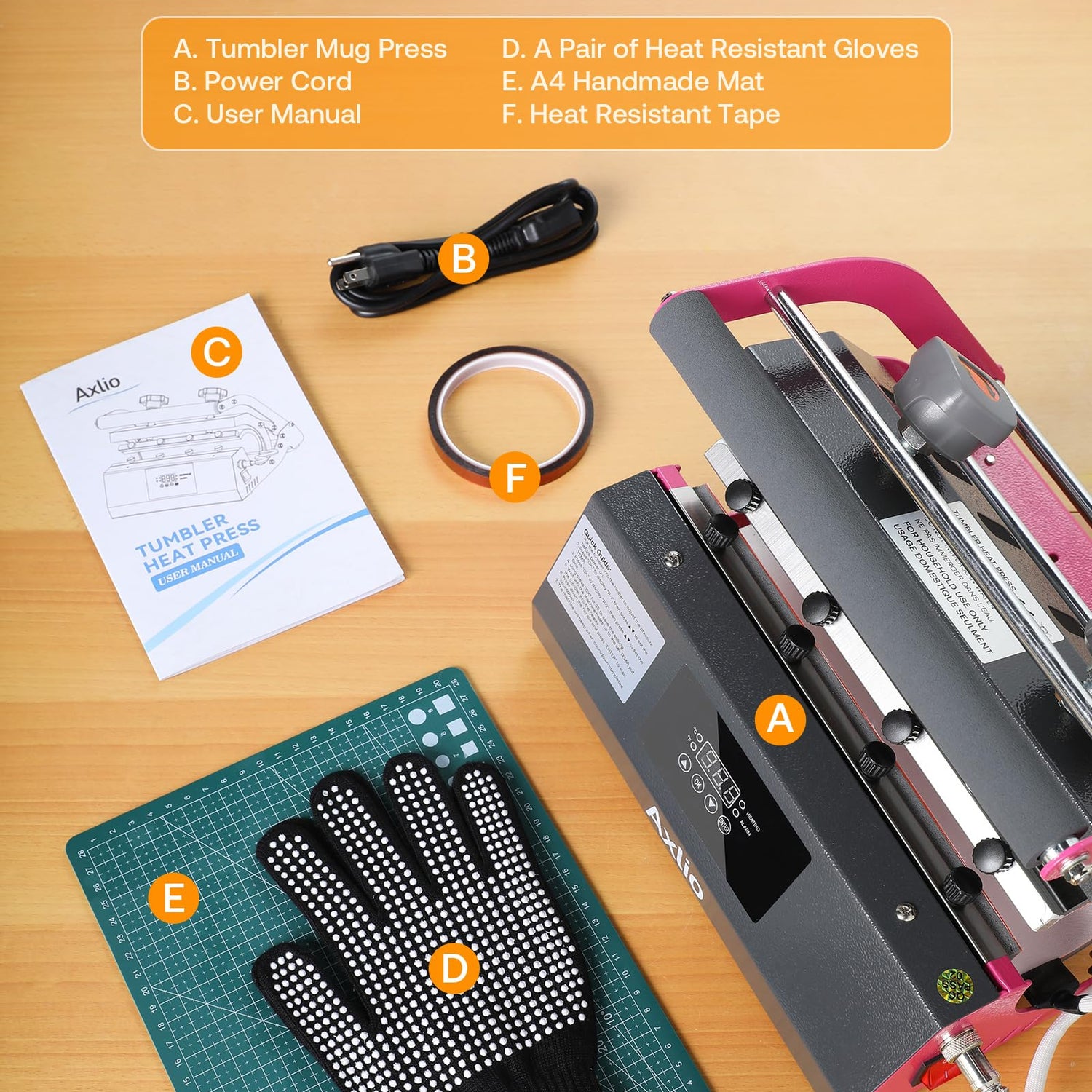 • 【Included Items】 1×Tumbler Heat Press Machine, 1× Heat Tape, 1× A4 Cut Mat, and 2 × Heated Gloves. This is a product that you will come to love as soon as you receive it.