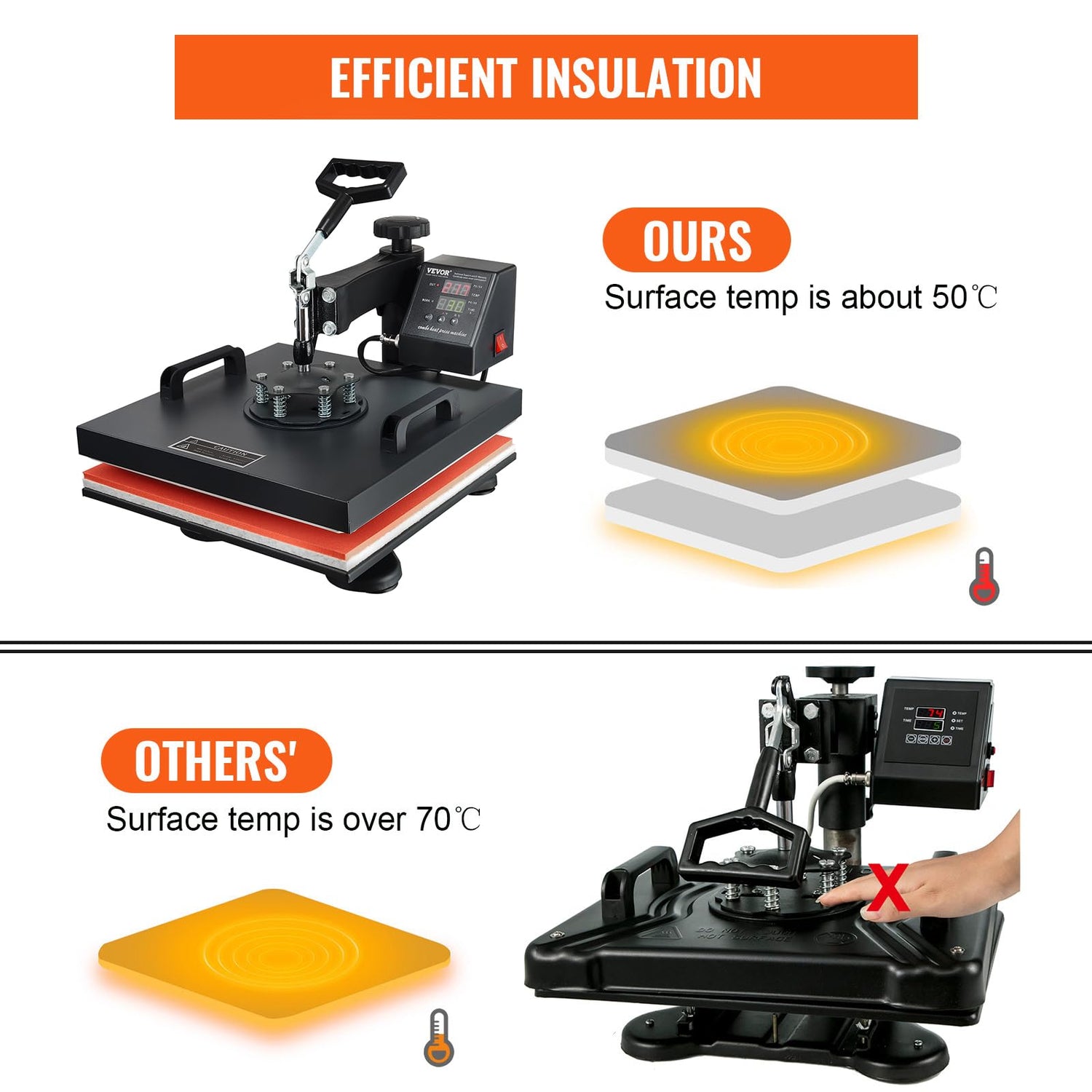 VEVOR 2 in 1 Heat Press 15x15 Inch 360° Swing Away Digital Tshirt Press Machine with 6x3 Inch Hat Press, Multifunction Combo for T Shirt Hat Cap Pillow Bag, 2in1-Black