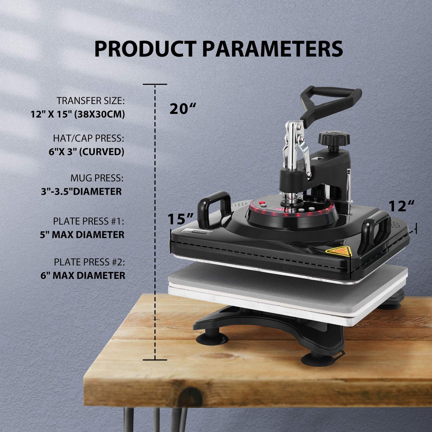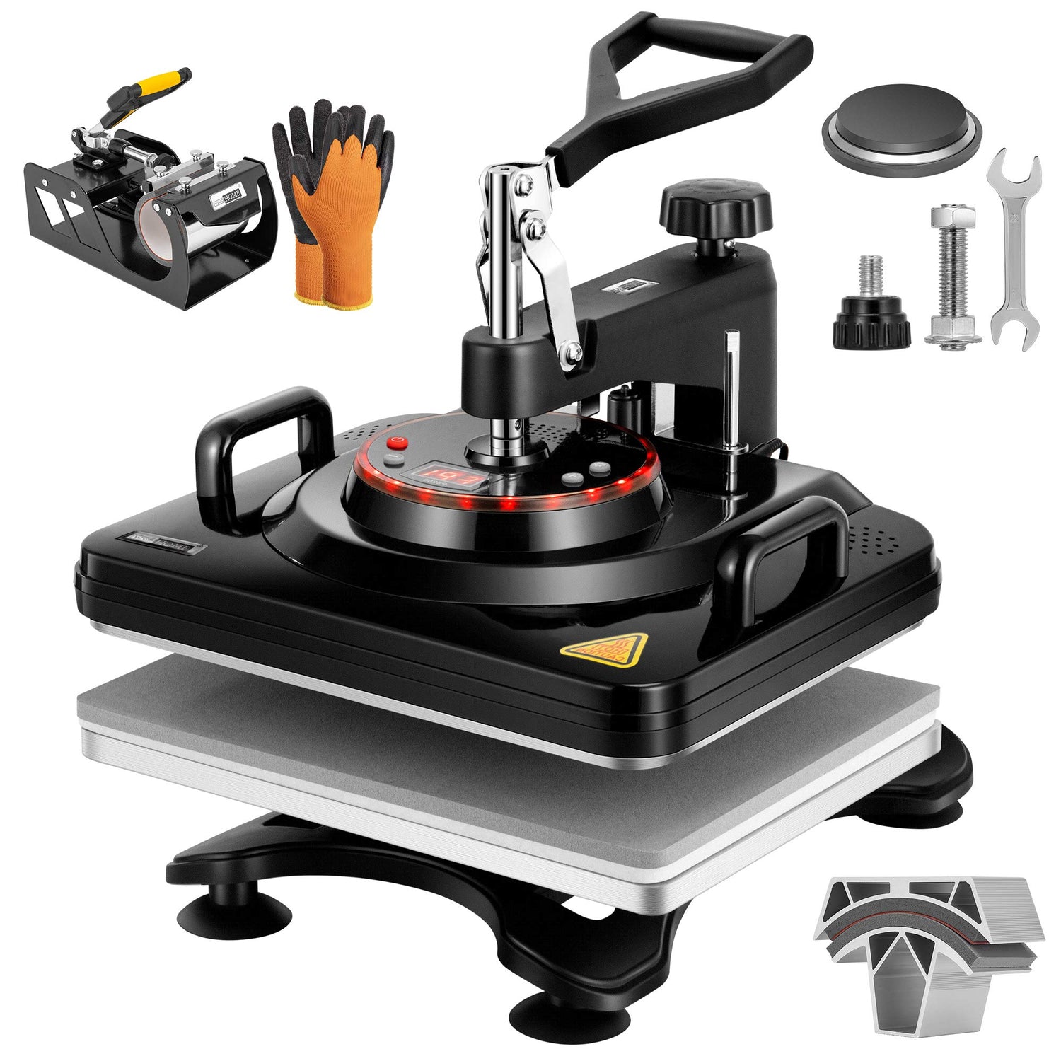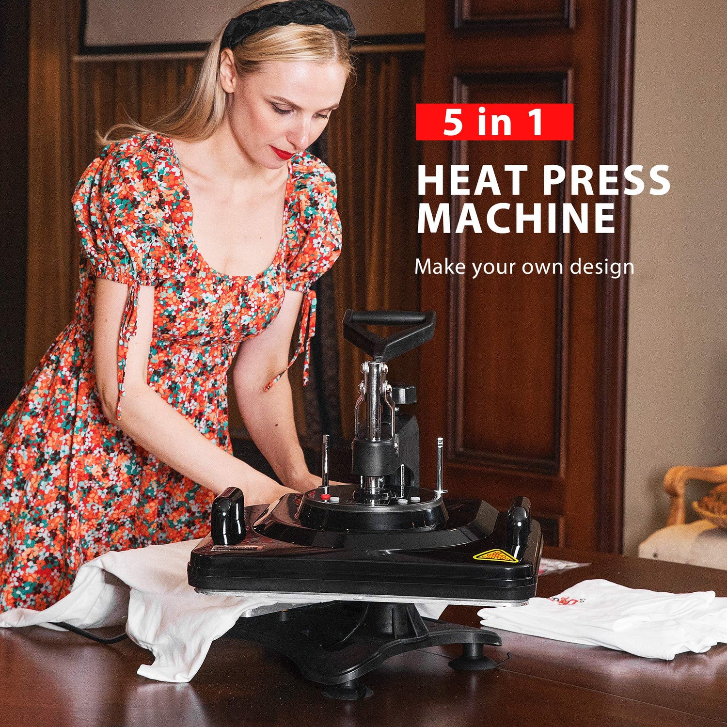 VIVOHOME Upgraded 5 in 1 Combo Multifunctional Swing Away Clamshell Printing Sublimation Heat Press Transfer Machine for T-Shirt Hat Cap Mug Plate 15 x 12 Inch Black