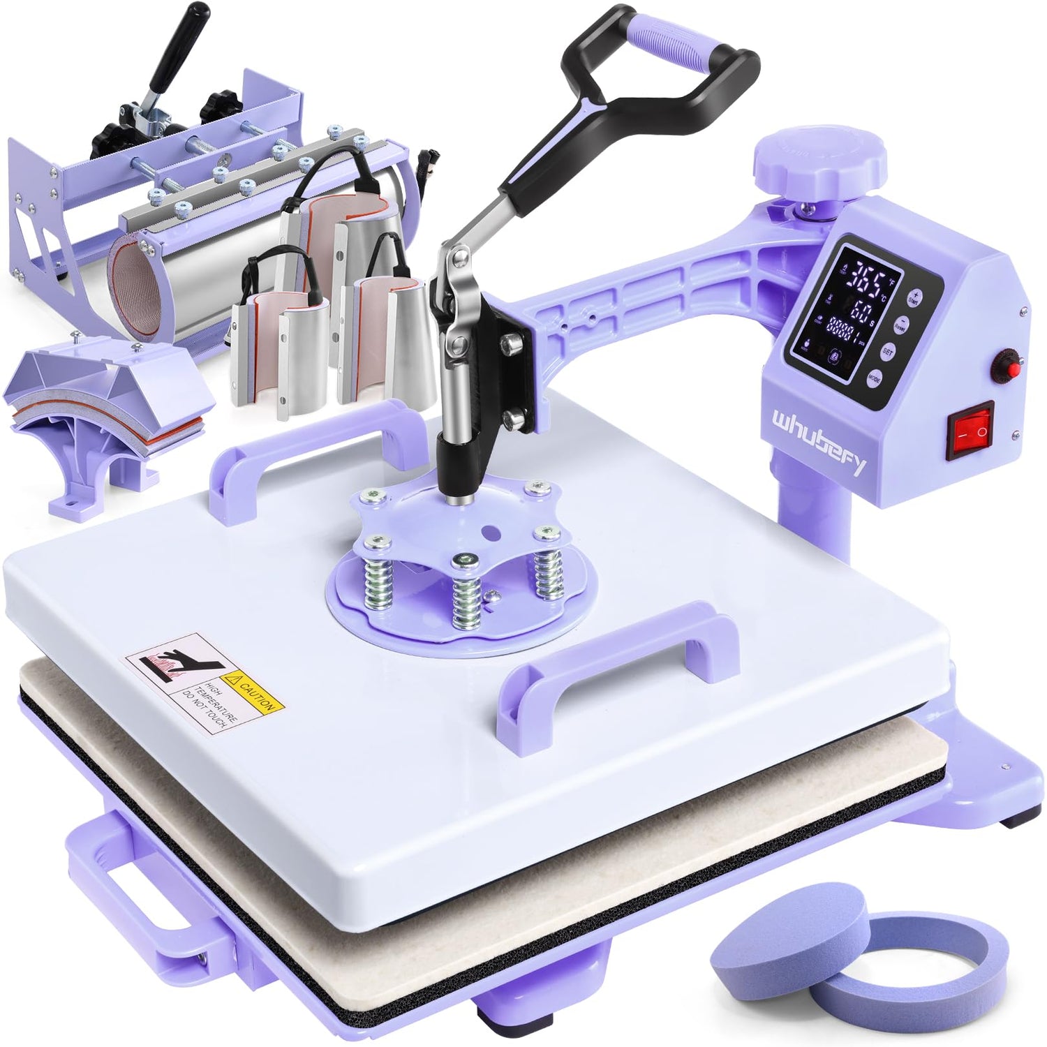 • đŸŸȘ【8-in-1 Purple Professional Combo Heat Press】Unlock limitless creativity with Whubefy's ultimate all-in-one solution featuring: 15x15" main platen (T-shirts/totes), 30oz tumbler press, hat attachment, 6"/8" plate presses, PLUS exclusive triple cup system (straight 9oz/tapered 12oz/tapered 17oz). Effortlessly switch between projects in 60 seconds. Perfect for crafters and businesses producing custom apparel, drinkware, ceramics, and promotional items. The industry's most versatile press handles 8 applications - from shirts and hats to mugs, plates, puzzles, and coasters