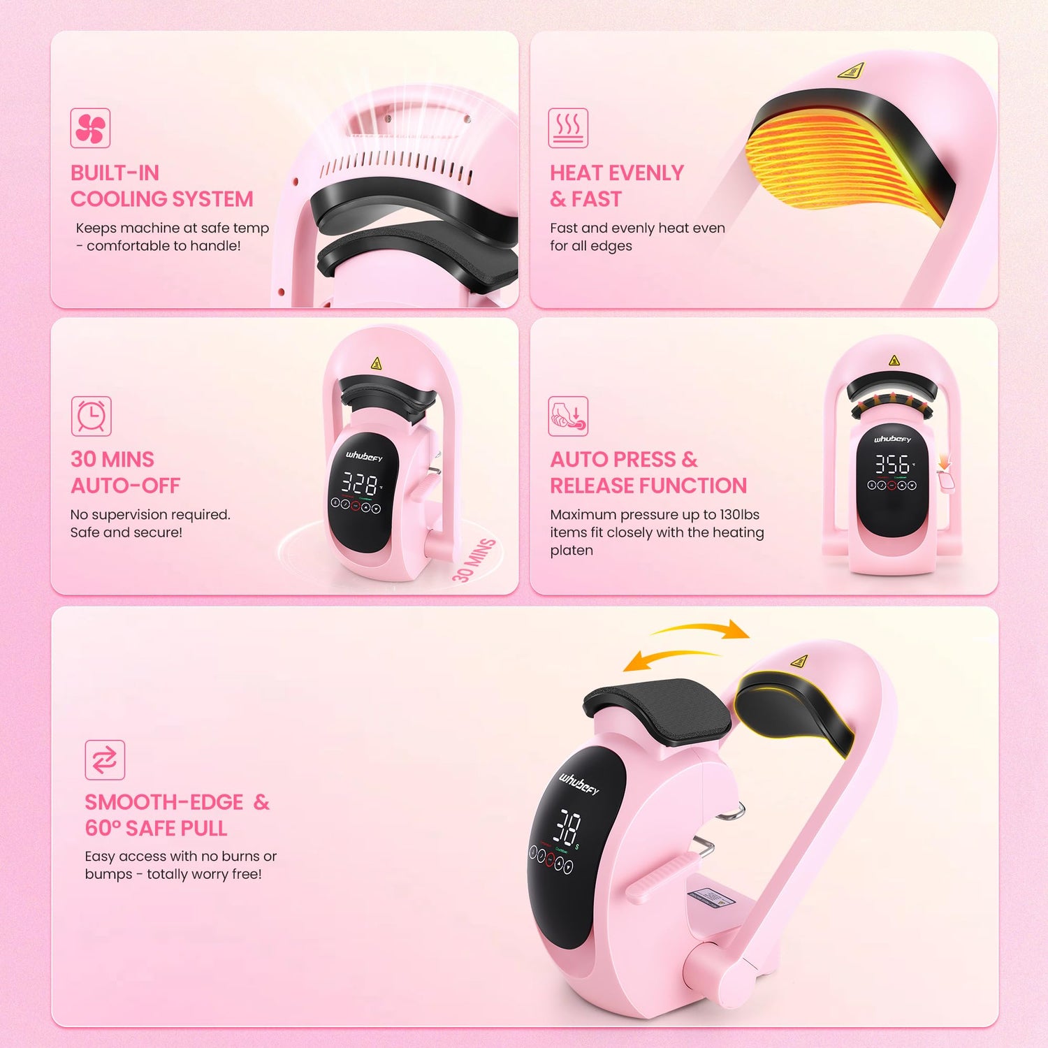 - đăInnovative 45° Sliding Heat Plate DesignăUnlike traditional flip-up hat presses, the Whubefy hat press features a groundbreaking sliding heat plate that extends out at a 45-degree angle. The unique push-pull design ensures safe and convenient operation with easy item placement, completely eliminating any risk of hand injuries. The hat press's graceful curved body design, featuring flowing arcs and smooth edges throughout - with no sharp corners or edges anywhere - not only enhances its aesthetic appeal but also maximizes safety