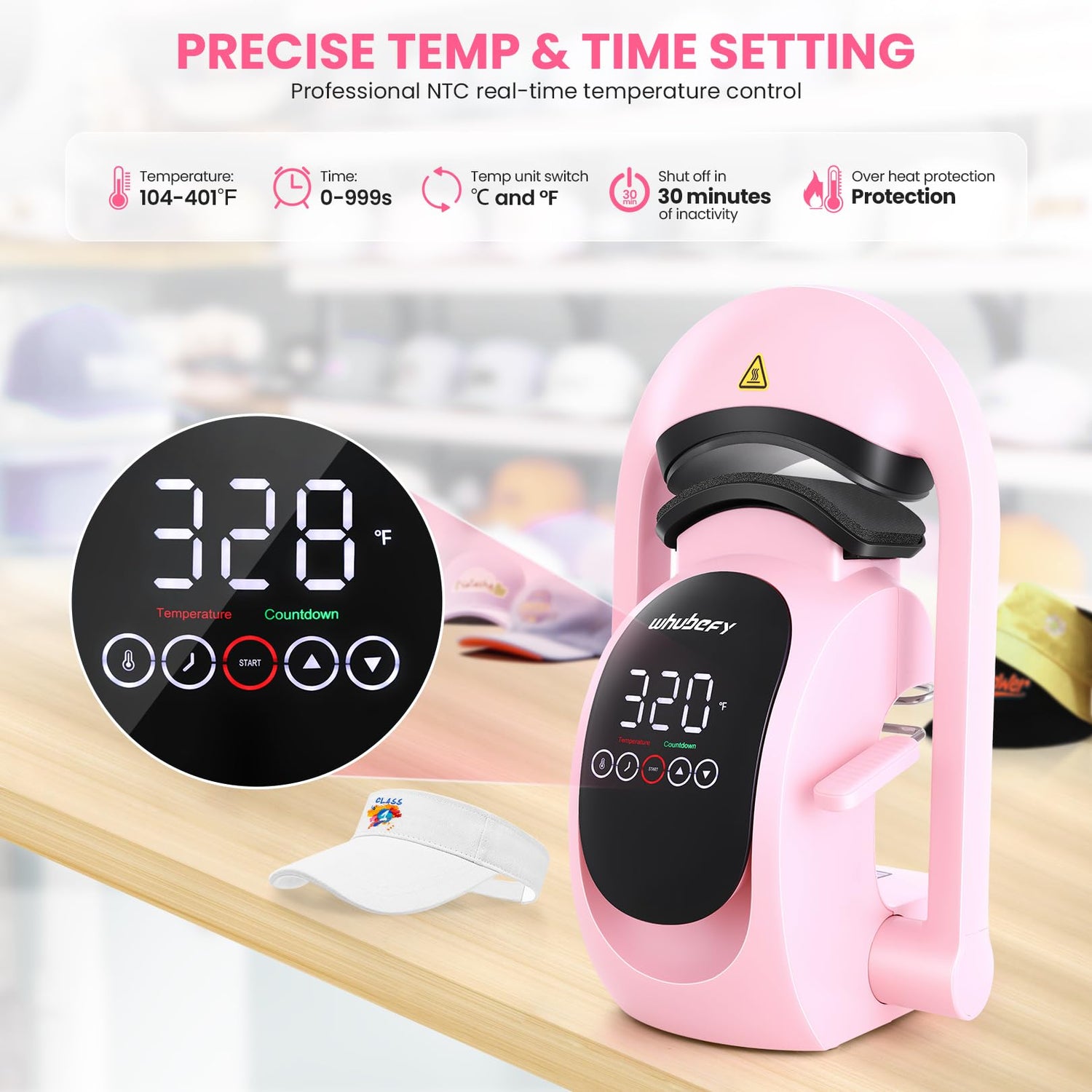 - âĄăIntuitive Touchscreen Control PanelăThe Whubefy hat press features an innovative touchscreen control panel with extra-large digits and crystal-clear display, making it highly visible and easy to operate even for people with limited vision and seniors. The user-friendly interface requires just a gentle tap to adjust temperature and time (Temperature range: 104 - 401 â(40-205 â); Time range: 1 - 999s). Long-press the temperature button for 3 seconds to switch between Fahrenheit and Celsius. With such an intuitive and user-friendly design, anyone can master this machine with confidence, making heat transfer projects truly hassle-free