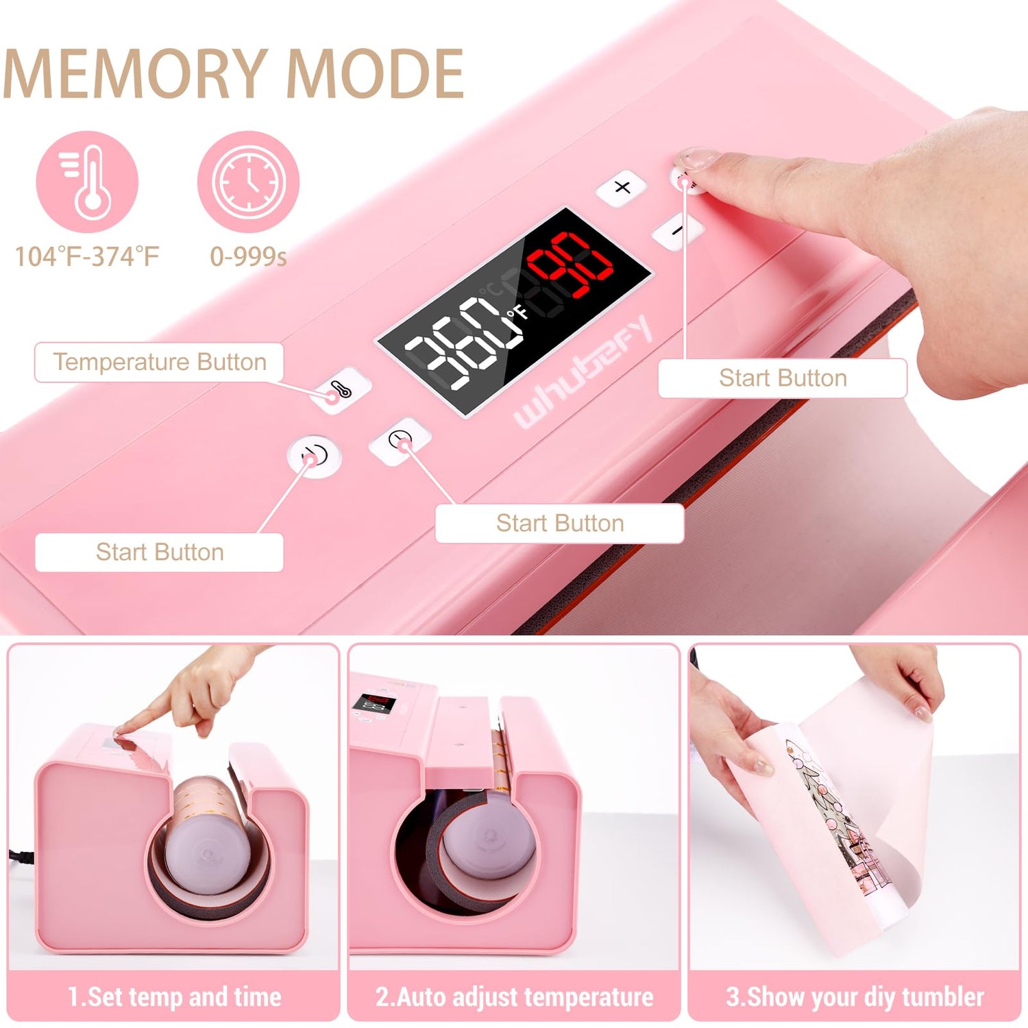 Whubefy Auto Tumbler Heat Press Machine, Pink Mug Heat Press for 10-30oz 2.9-3.34 Inch Heating Even & Fast, PRO Tumbler Press Machine with Starter Kit, Sublimation for Tumbler, Glass Jar, Can & Mugs