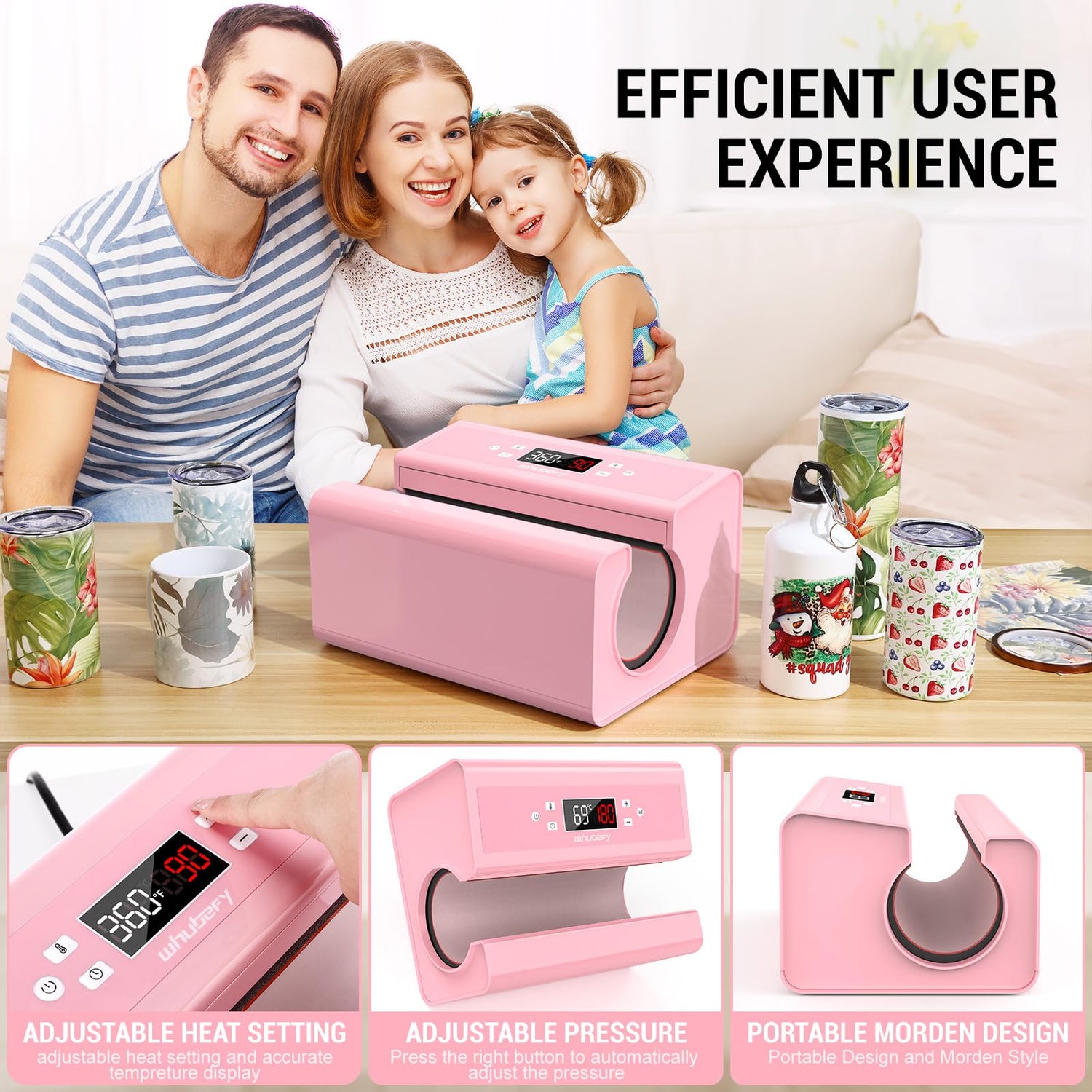 Whubefy Auto Tumbler Heat Press Machine, Pink Mug Heat Press Heat Up Even & Fast, Cup Press Machine for 30oz, Sublimation Machine for Tumbler 2.6-3.34in, Glass Jar, Can & Mugs, Halloween Spirit