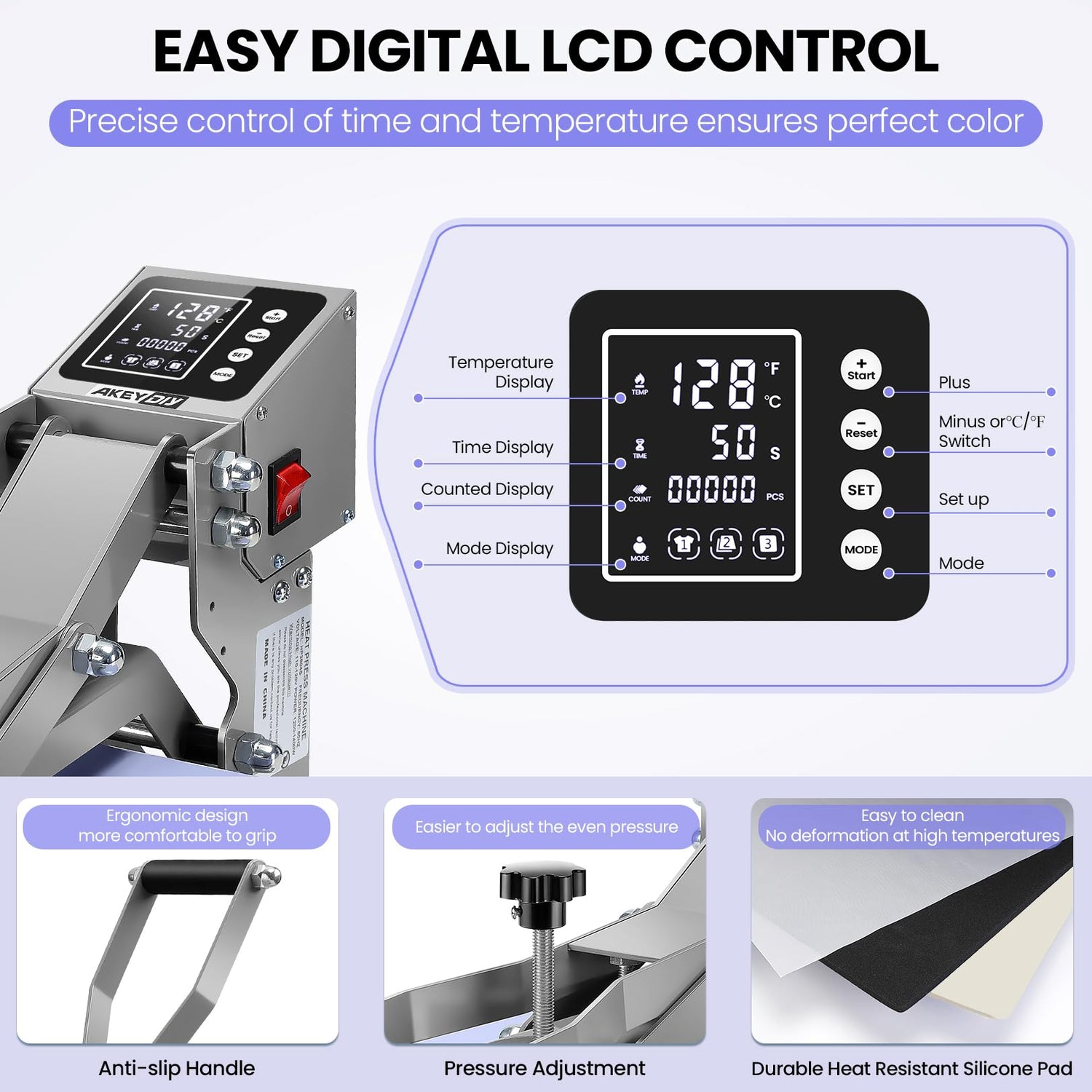 • ✅Upgrade Control Box with 3 Mode Selection: The Mode Selection feature lets you preset temperatures and times for efficiency. The LCD display and user-friendly buttons simplify setting your desired time and temperature, with heating stopping once the preset temperature is achieved. A sound alarm signals when the preset time is up. ⚠️Power: 1200-1400W, Temperature range: 0-482℉, Time range: 0-999s.