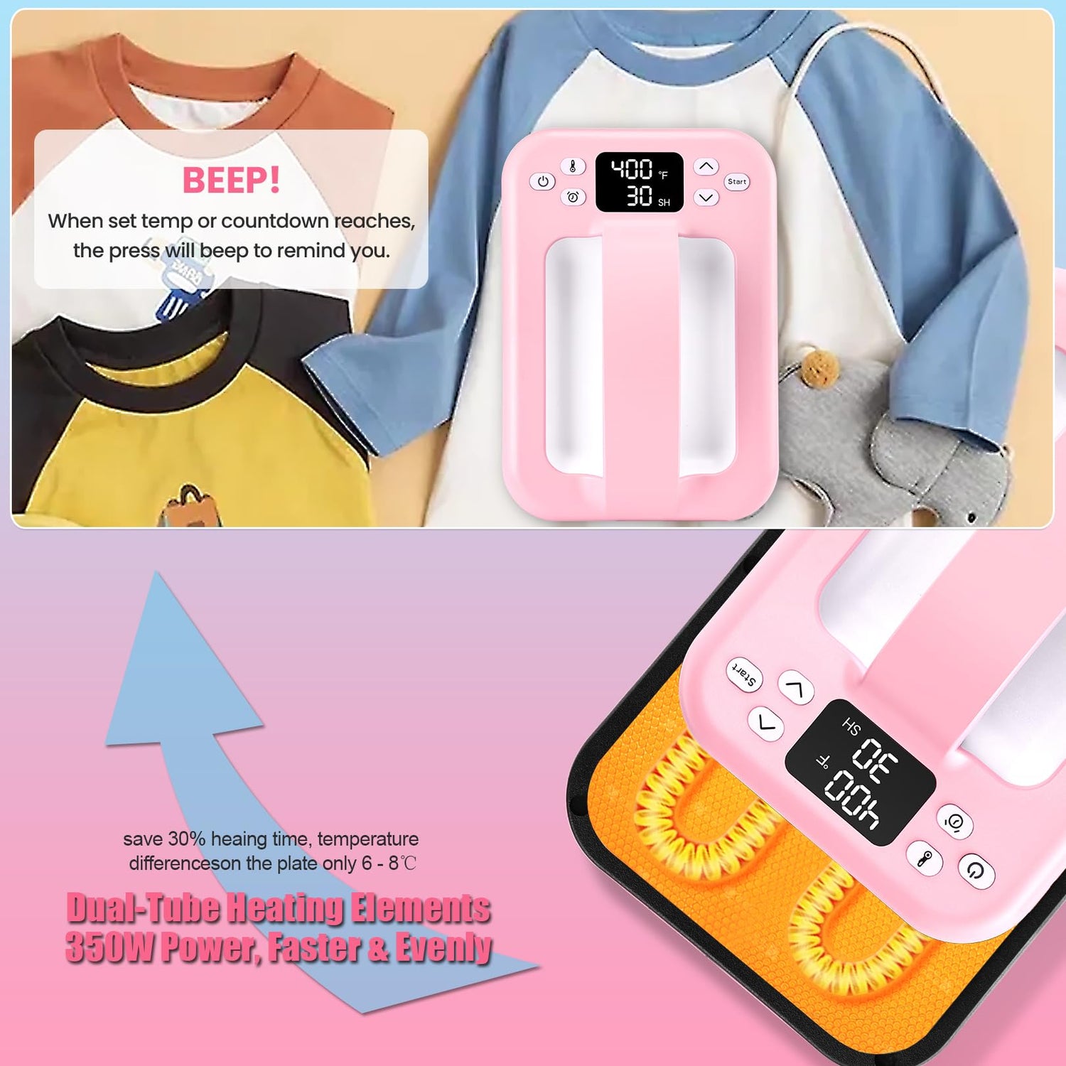 Whubefy Smart Heat Press Machine for T Shirts 7x5 Portable APP Control Easy Press Dual-Tube Fast Heat Up w/Insulated Base & Ceramic-Coated Heat Plate, Built-in Bluetooth Mini Iron for Small Projects