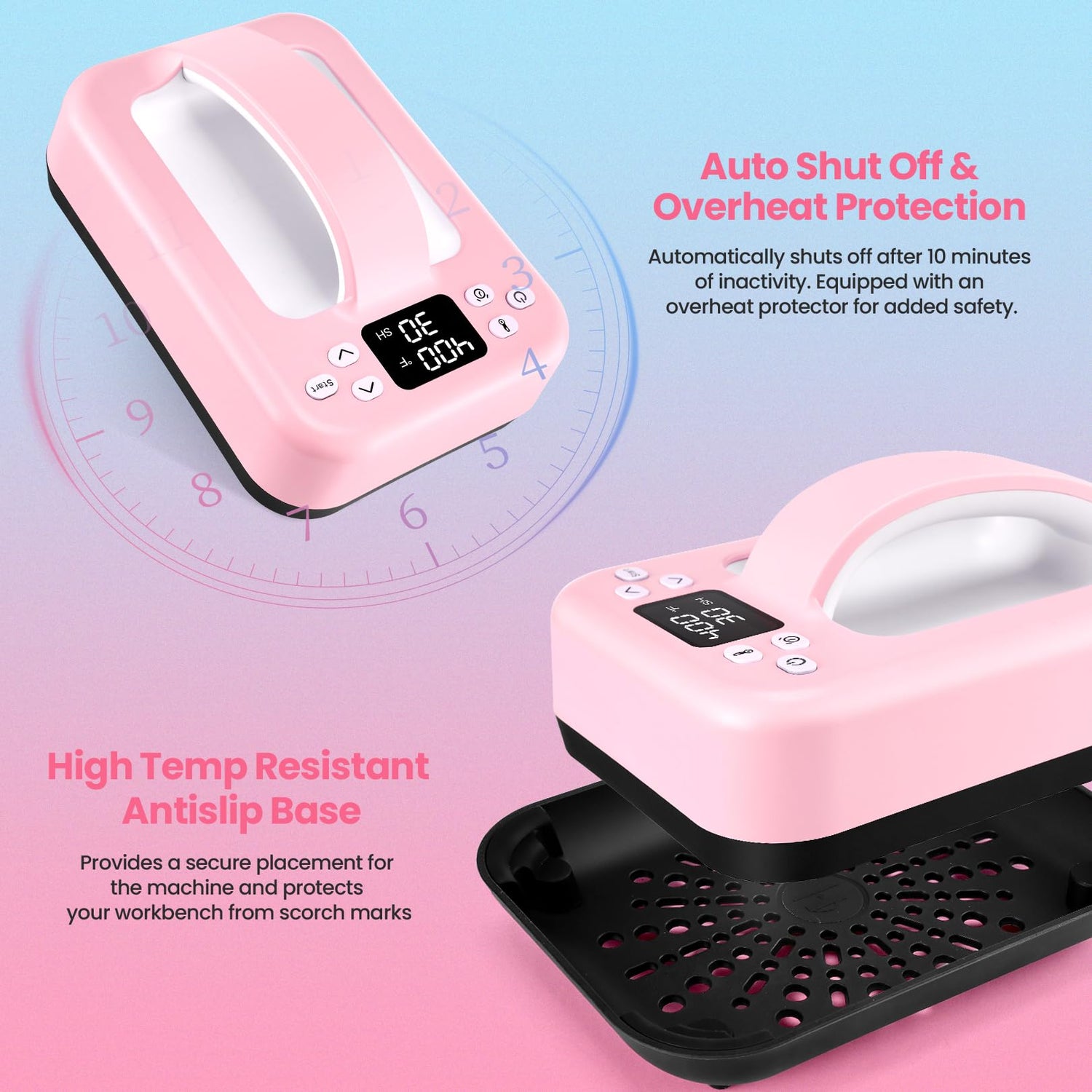 • 【Enhanced Safety Features & Smart Auto-Shutoff】The Whubefy smart shirt press includes a high-temp resistant, non-slip black insulated safety base to protect your workbench from scorch marks, making it safe to use around your kids and pets. The top handle keeps your hands away from the hot plate, and a beep signals when time is up. It also has an overheat protector for added safety. Plus, it automatically shuts off after 10 minutes of inactivity, so you don't have to worry about any fire hazards