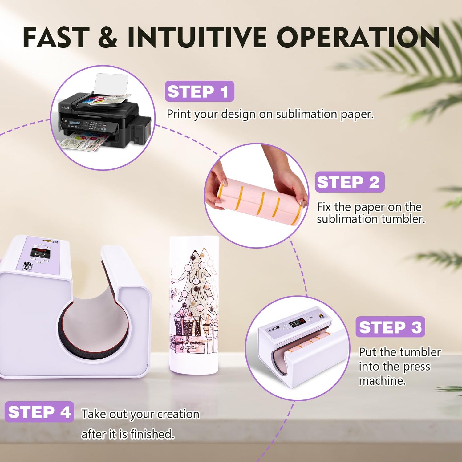 • ❃【WIDELY APPLICATION & 10-30 OZ】Max Length: 10.2inch; Diameter: 2.95-3.34inch. Full Tumbler Surface Heat Transfers Print. The Tumbler sublimation machine fits 11oz/15oz mugs/20oz/30oz straight tumbler,glass,mug and more. If your print design is a full package design, we recommend printing twice.