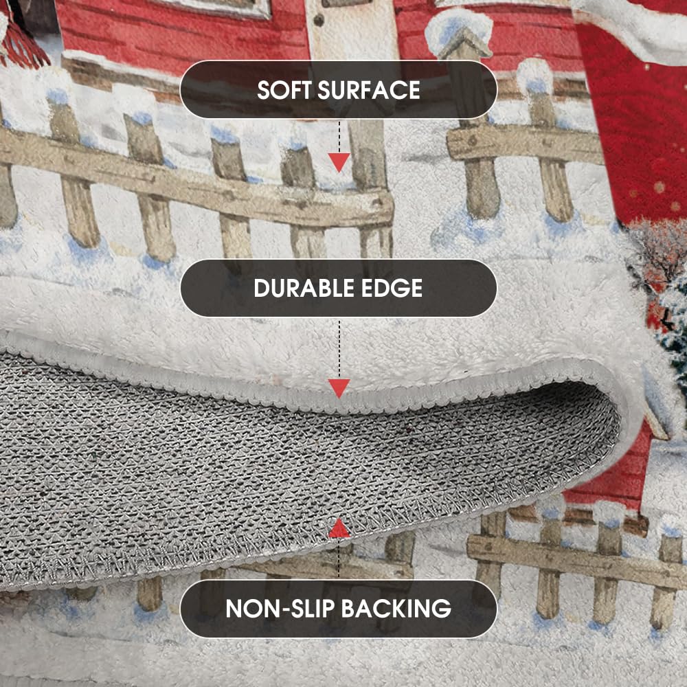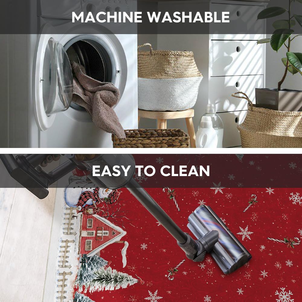 Artoid Mode Red Snowman House Pine Tree Christmas Area Rug, Xmas Winter Home Decor Low-Profile Washable Area Rugs for Entryway Bedroom Living Room Laundry Room Indoor 5x7 Feet