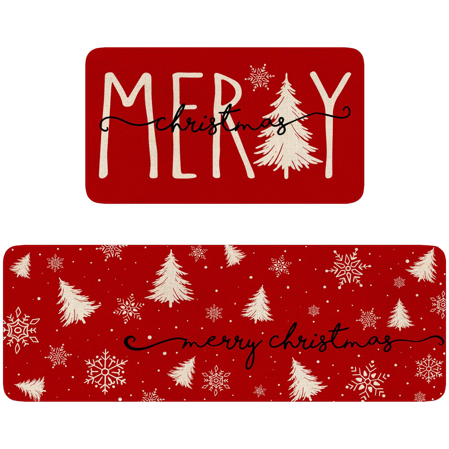 Eikunn Red Christmas Kitchen Rugs Set of 2 Xmas Trees Snowflake Kitchen Mat for Floor Winter Holiday Non-Slip Kitchen Sink Mats Kitchen Decor Doormat+Runner Rug