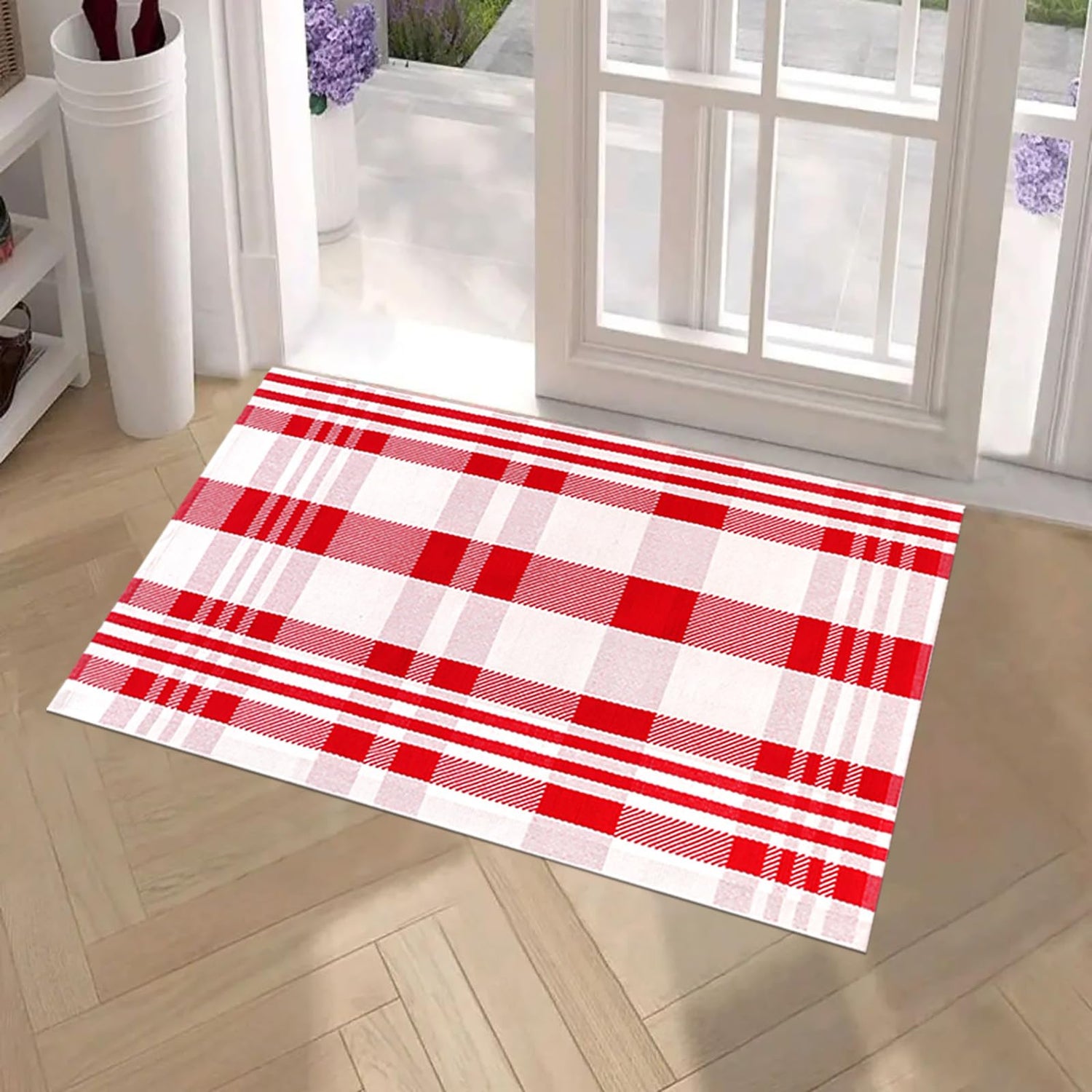 Fallovea Christmas Rugs Red and White Plaid, 28 x 43 Inches Area Rug Outdoor Indoor Front Porch Doormat Cotton Hand-Woven Layered Door Mats for Entryway Patio Entryway Laundry Bedroom Living Room