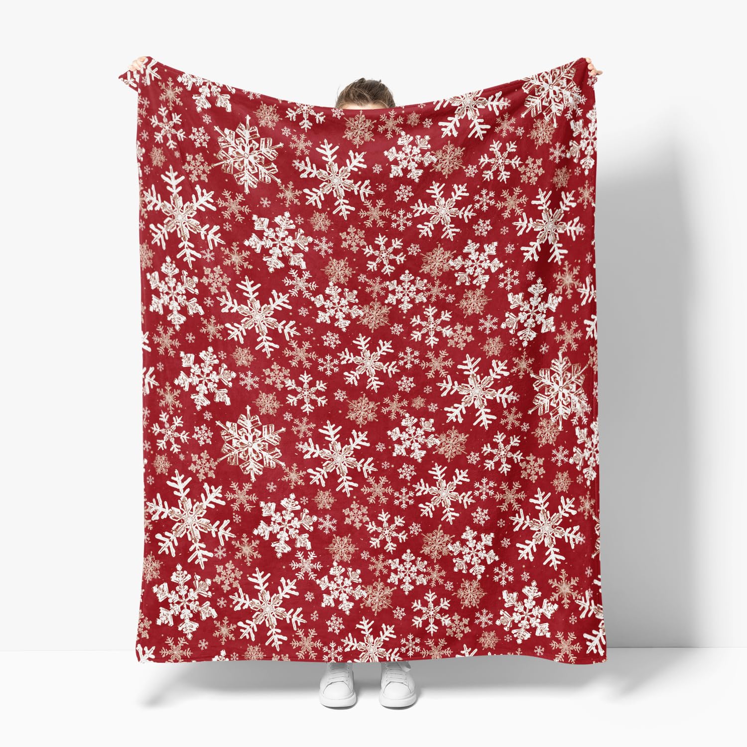 Horaldaily Christmas Flannel Blanket Throw, Red Snowflake Soft Fuzzy Plush Cozy Fleece Blankets for Couch Sofa Bed Lounging, Ideal Gifts for Kids Adults Wife Self, 50x60
