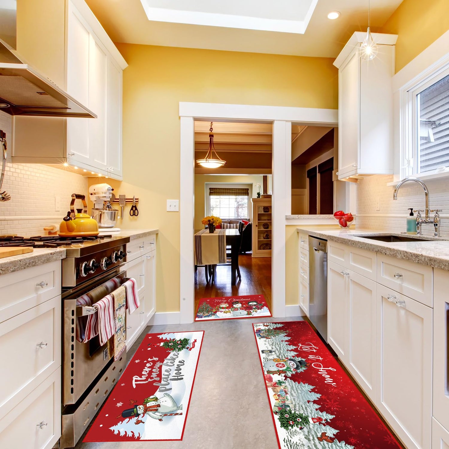 - Red Snowman Merry Christmas Kitchen Rugs and Mats Set: the red snowman merry Christmas kitchen rugs and mats set comes in a package of 3 with different sizes of 20 x 32 inches, 20 x 47 inches and 20 x 59 inches; For your convenience and matching decor, these mats provide diversity and versatility in placement options around your house
