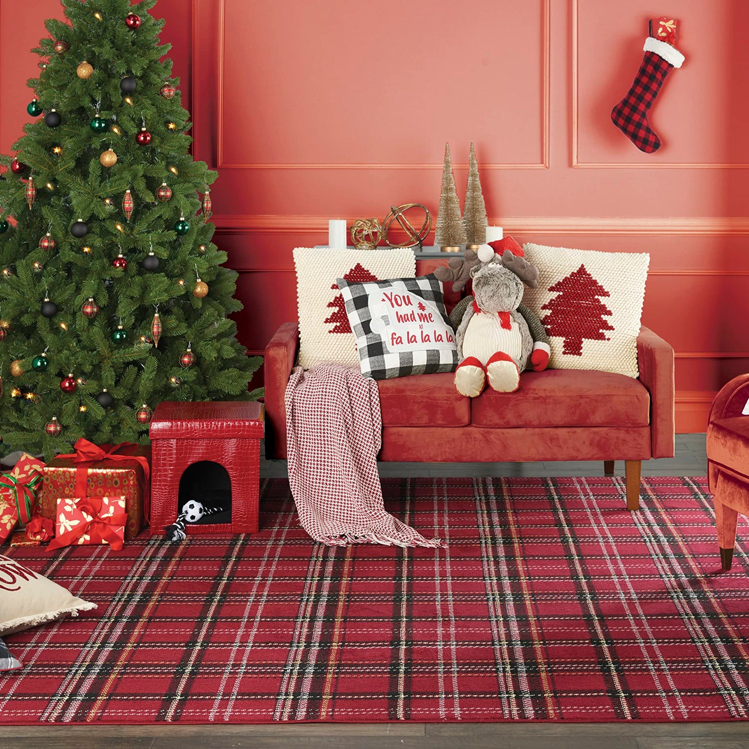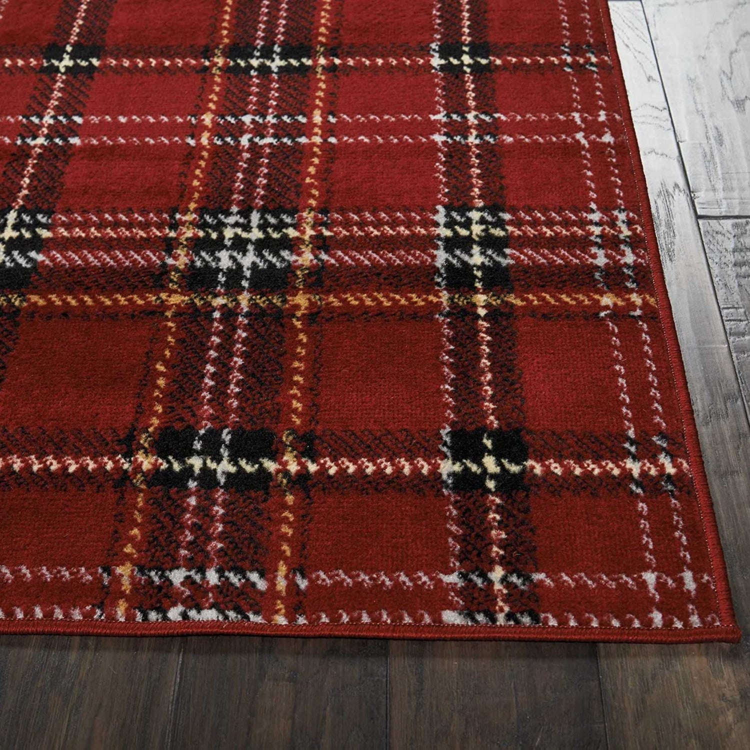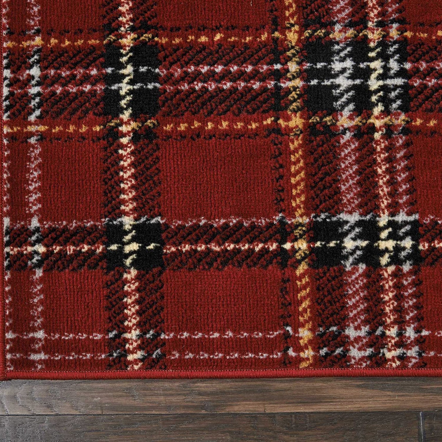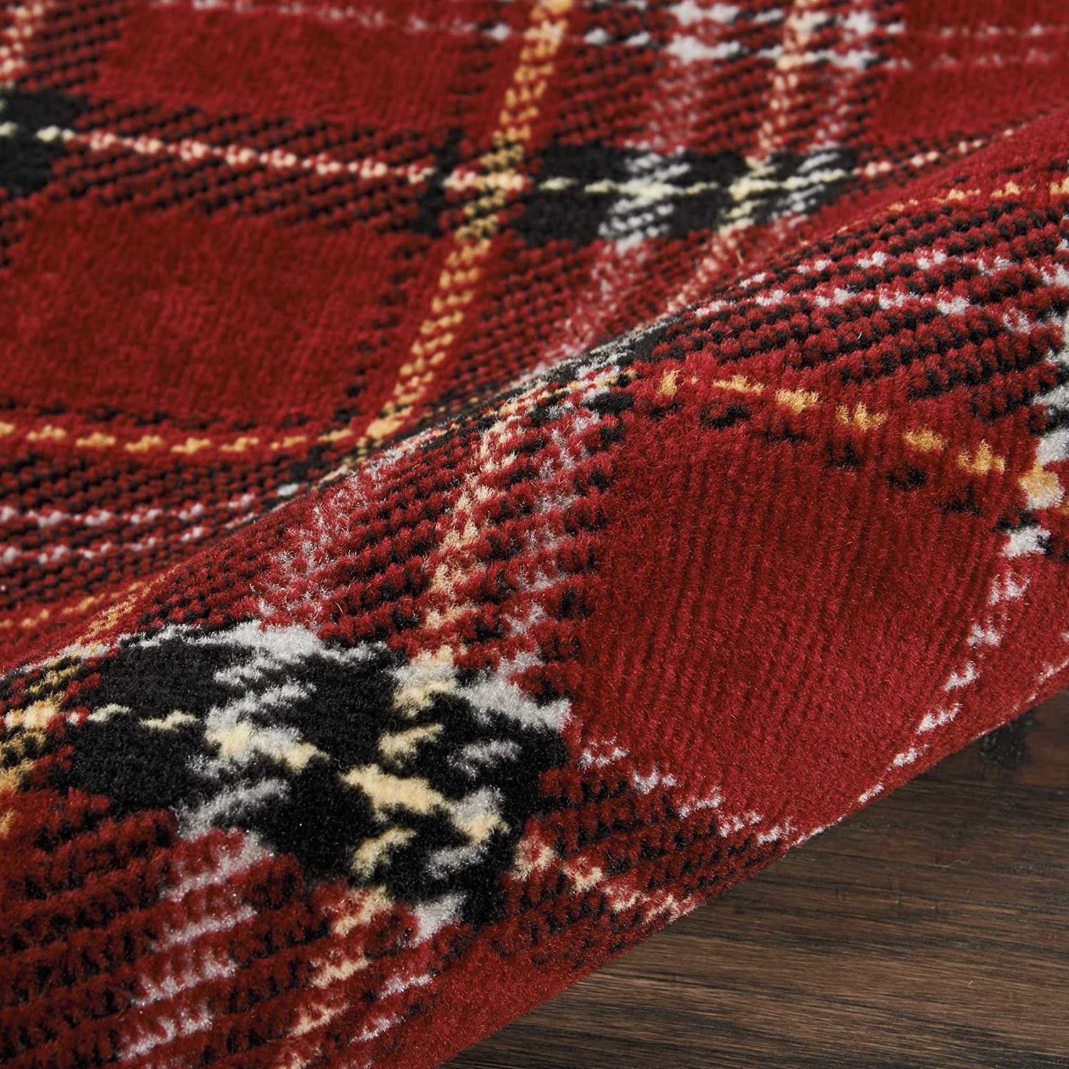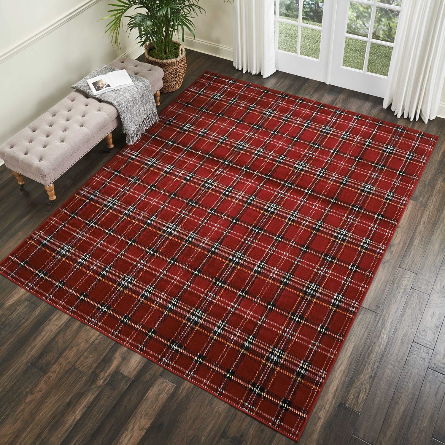 Nourison Home Grafix Red 7'10'' x 9'10'' Area-Rug, Modern, Plaid, Bed Room, Living Room, Dining Room, Kitchen, Easy-Cleaning, Non Shedding, (8' x 10')