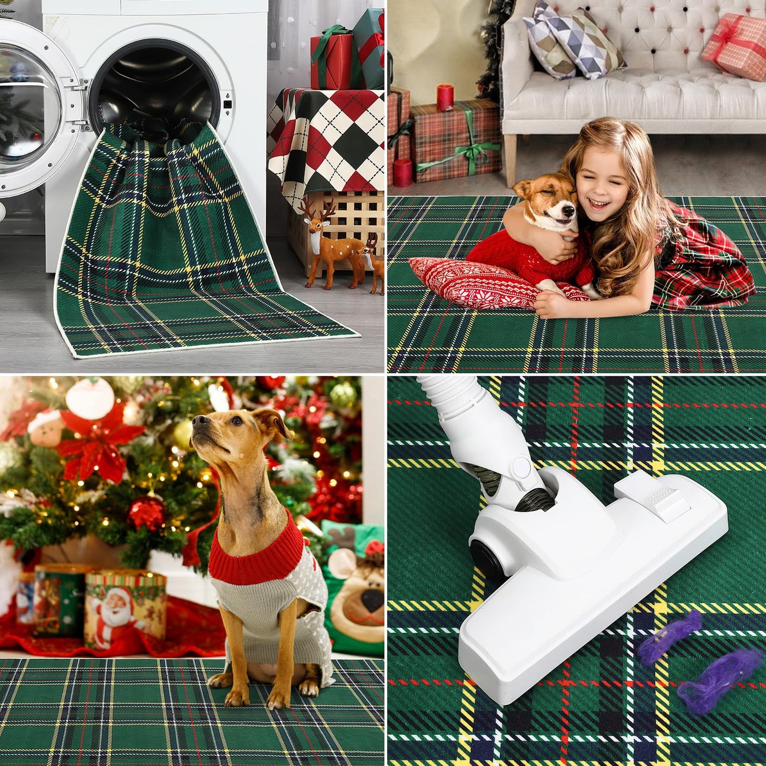 Details: Christmas Area Rug buffalo plaid Pattern Floor Cover Machine Washable Indoor Carpet Rug Holiday Decorative Gingham checker Non Slip Accent Rug for Living Room Bedroom