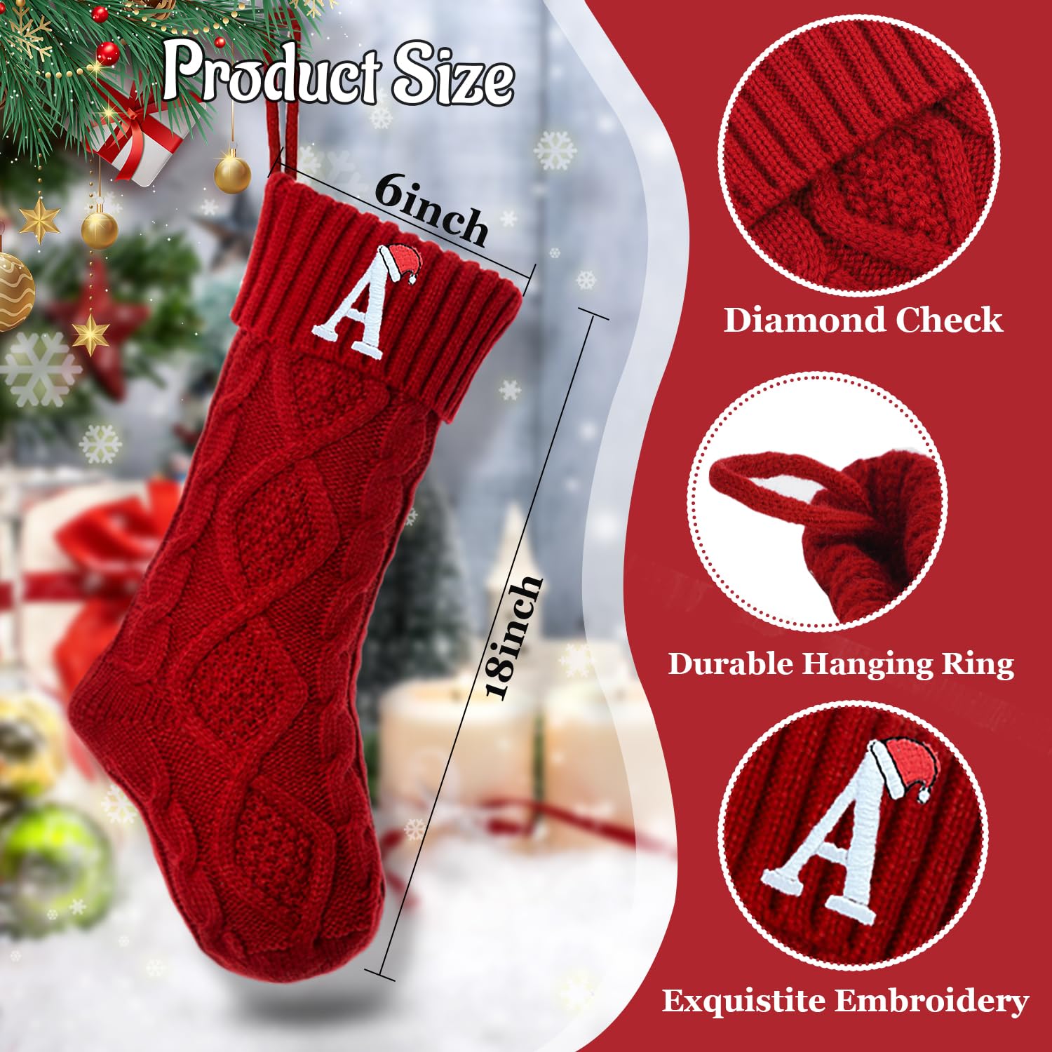 Ulico Christmas Stockings with Initials, 18’’ Large Embroidered Monogram Knit Christmas Stocking,Xmas Stocking for Kids, Holiday and Family Stocking for Fireplace or Party Decoration Red Letter A