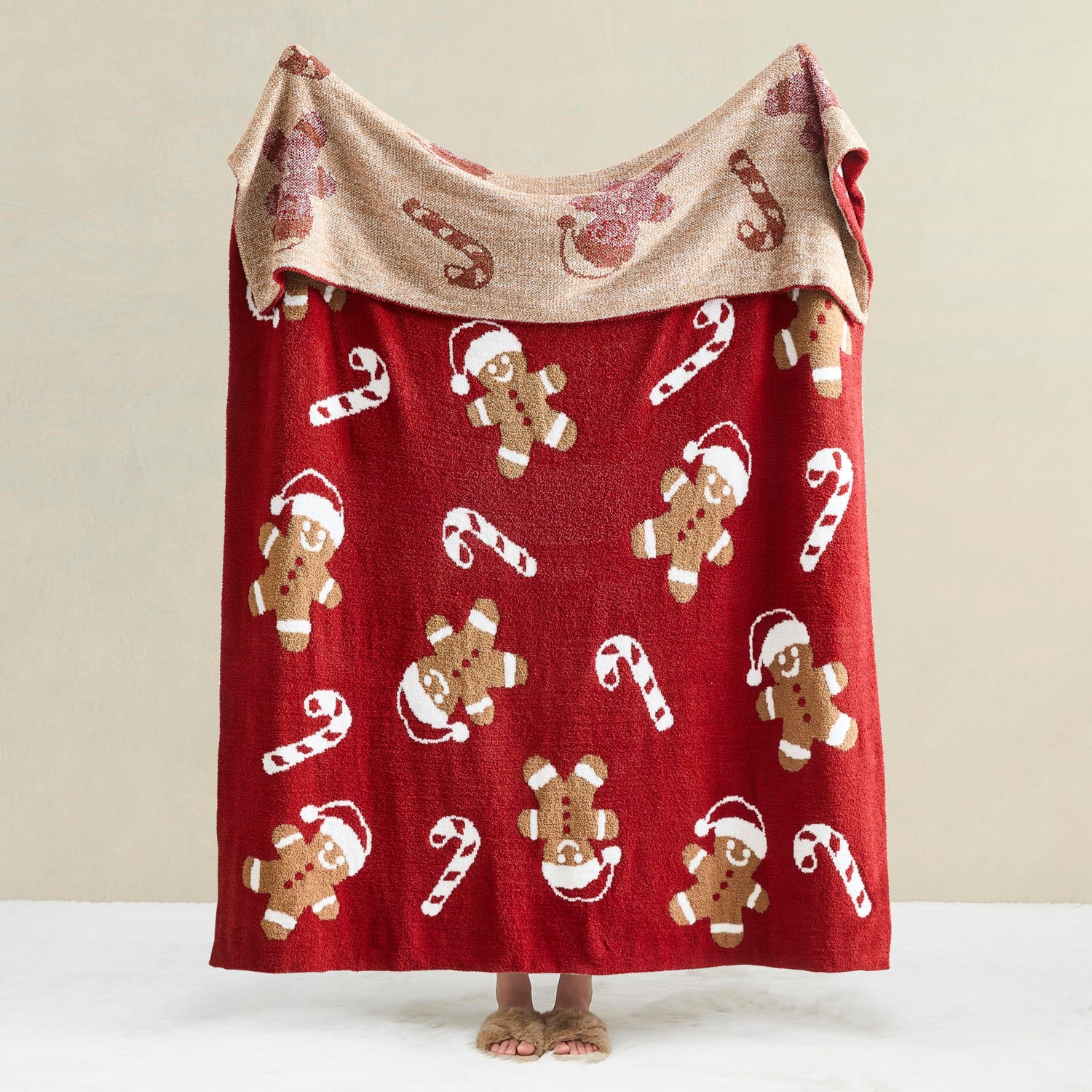 WDCOZY Christmas Throw Blanket Gingerbread Man Reversible Super Soft Knitted Blankets Couch Bed Sofa Microfiber Warm Cozy Lightweight Fluffy Fuzzy Fall Cute Blanket Winter 50x60 Inches
